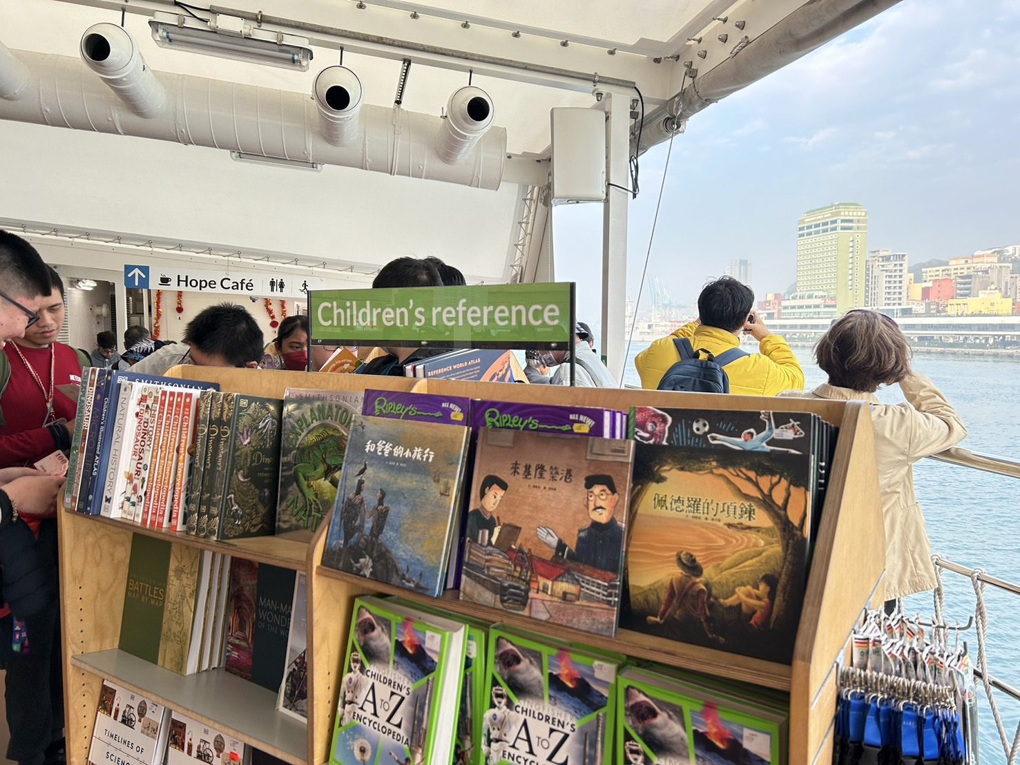 為感謝望僕號(Doulos Hope)停靠基隆港期間帶來豐富的文化饗宴,基隆市文化觀光局特別贈送在地出版品,讓這艘滿載知識的「海上圖書館」將基隆的故事帶往世界各地。攝影集《潮浪基隆》與《誰來基隆》系列繪本各3套,期望讓國際讀者深入認識基隆的歷史人文與多元文化,讓這座海港城市的獨特魅力在全球航行。
