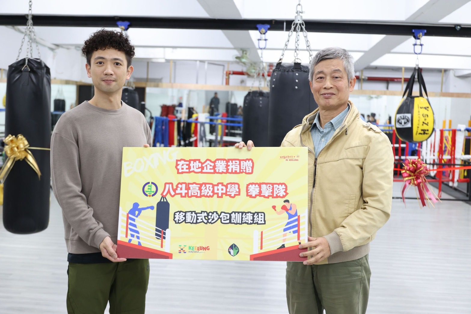 基隆市八斗高中日前參加「114 年總統盃全國中等學校拳擊錦標」,勇奪 1金2銅的亮眼成績。教育處副處長楊永芬與基隆市體育會拳擊委員會主委施偉政議員,今日(12/9)前往八斗高中,與教練、選手們一同慶祝,並感謝學校及所有師生的辛勞,教育處同時頒發拳擊隊計8萬3,000元獎勵金,以資鼓勵,並攜手社會企業捐贈移動式沙包訓練組,補強拳擊隊訓練設備,提升團隊競技能量,強化學校專項設備需求。