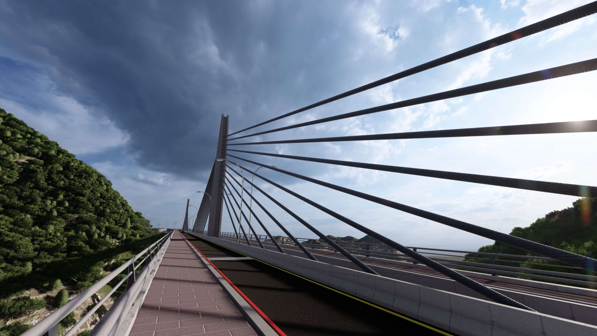 圖說:新建跨清水溪橋採雙脊背形式 橋面高差最高達120公尺,是視野遼闊的景觀大橋。(模擬圖)