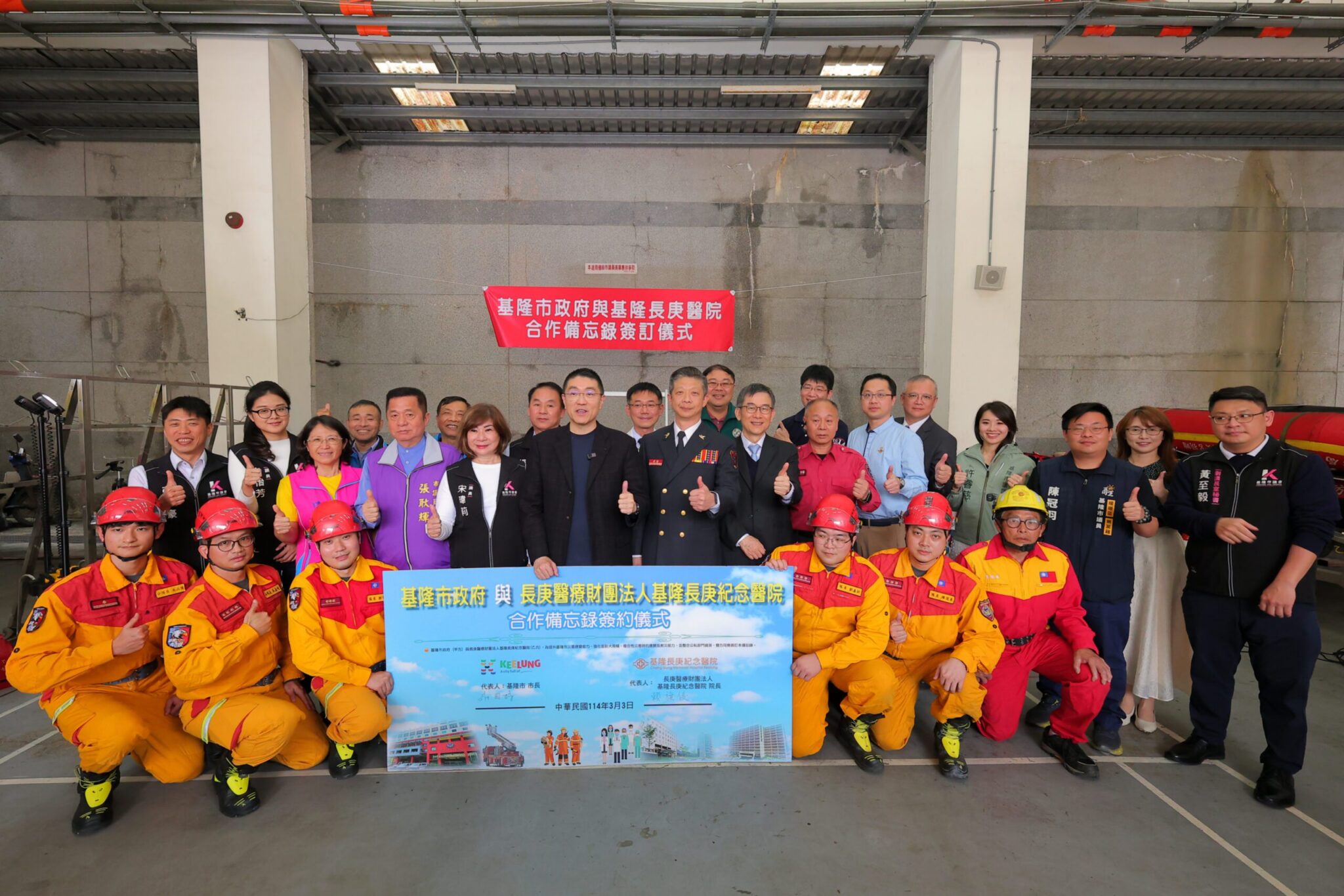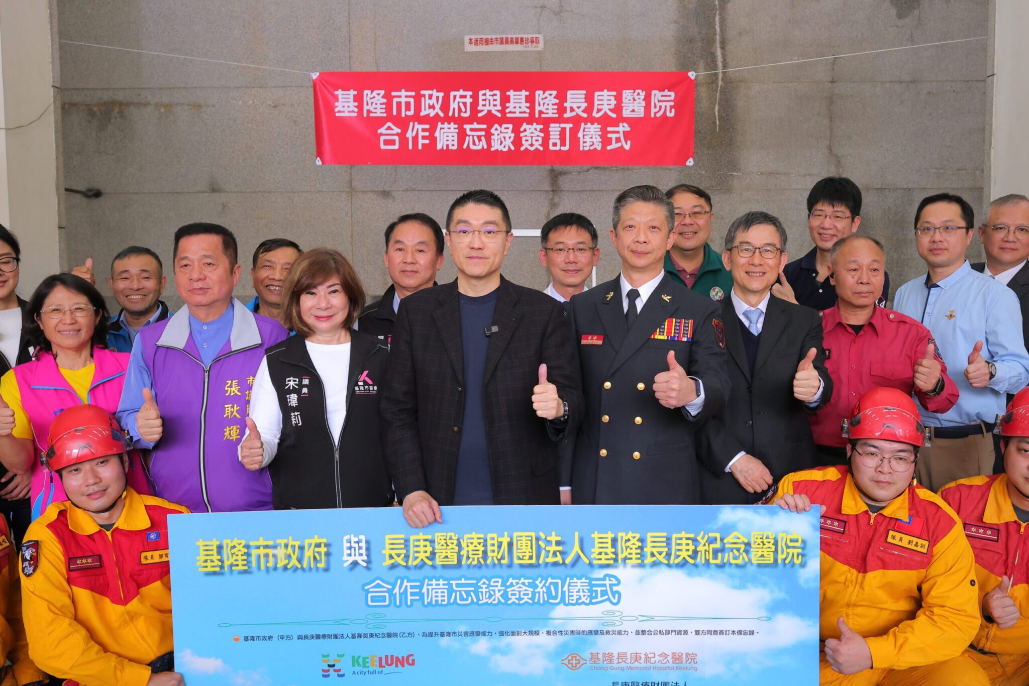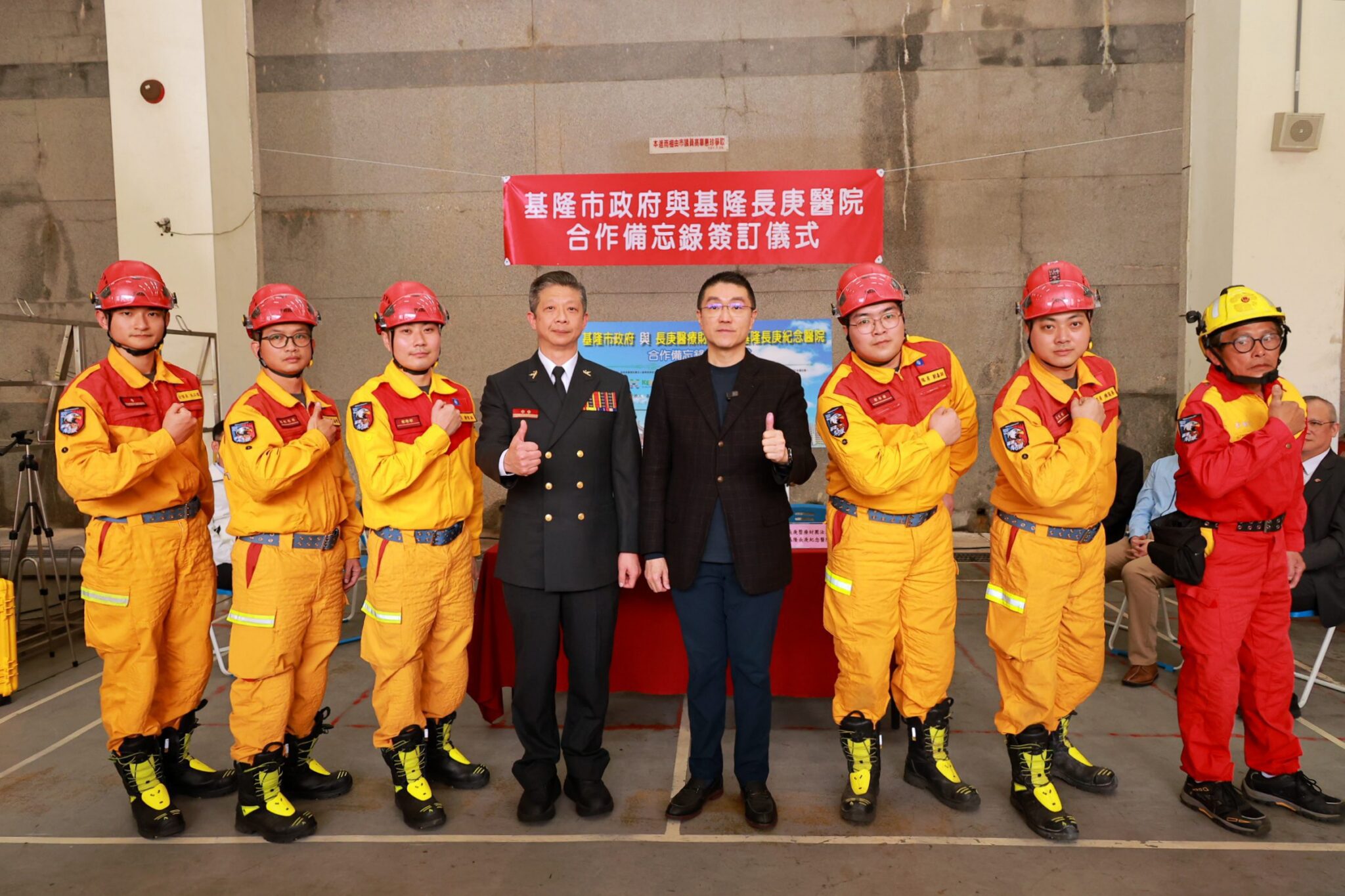 為提升基隆市的災害應變能力,整合公私部門資源,基隆市政府今(3)日與基隆長庚醫院正式簽訂合作備忘錄,雙方將攜手合作,強化特種搜救隊的醫療支援體系,讓救災行動更具國際水準。此次簽約儀式在多位貴賓見證下隆重舉行,雙方皆表示未來將深化合作,在救護與救災領域共創更高效能的應變體系;此外,市府對於特搜隊的發展高度重視,今日也宣布將七堵消防分隊正式升格為專責特搜分隊,並同步推動基隆市首支搜救犬隊的成立,讓搜救能力再升級。