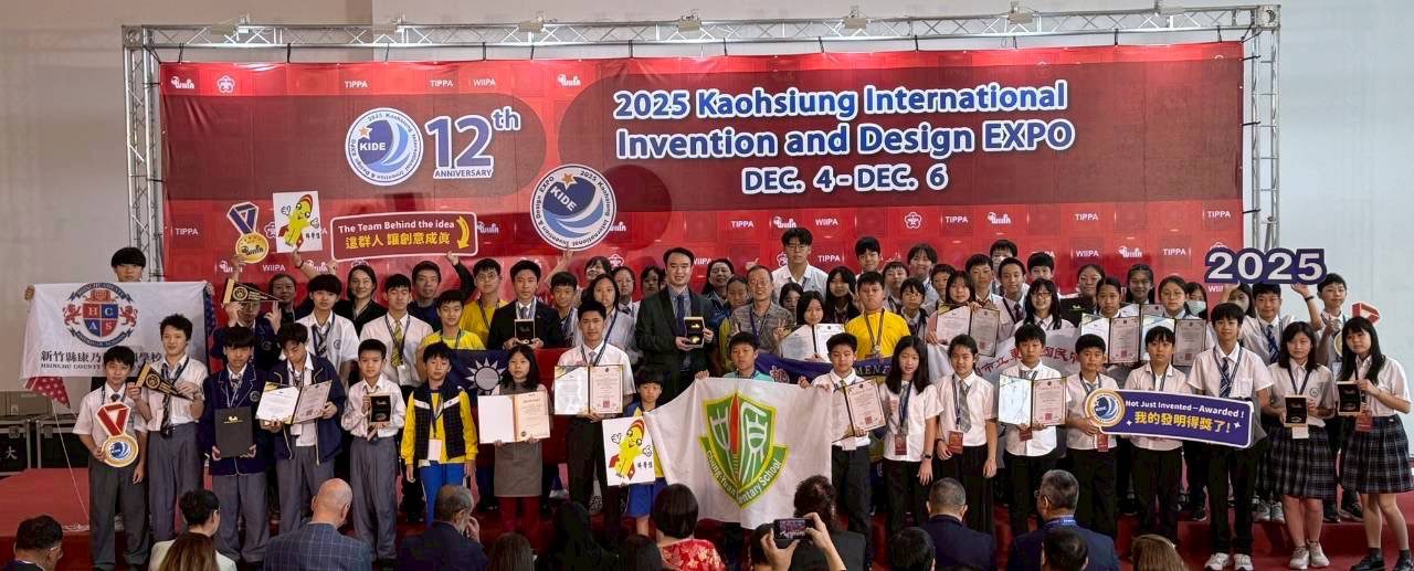2025 KIDE高雄國際發明暨設計展,連續第12年在亞洲新灣區熱烈舉行。今年吸引33國、500多件作品,跨海雲集高雄展覽館,展現全球創新科技能量。國際發明展的常勝軍桃園市會稽國中心發明社,今年再創新猷,勇奪 13面獎牌,充分展現台灣學生的創意能量,也成為桃園之光。