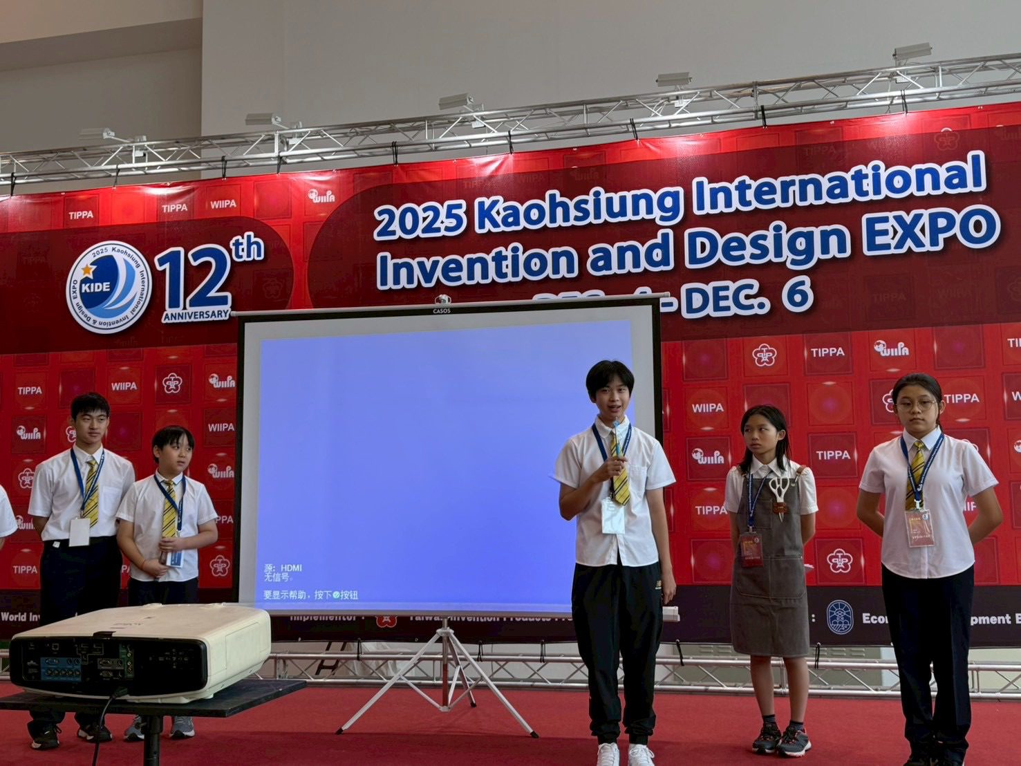 同時舉辦的「世界發明簡報技巧競賽」,是以全英文簡報方式檢視學生的思辨能力、創意表達與商業潛力,是青年發明人的重要舞台,會稽國中心發明社的成績表現相當亮眼。