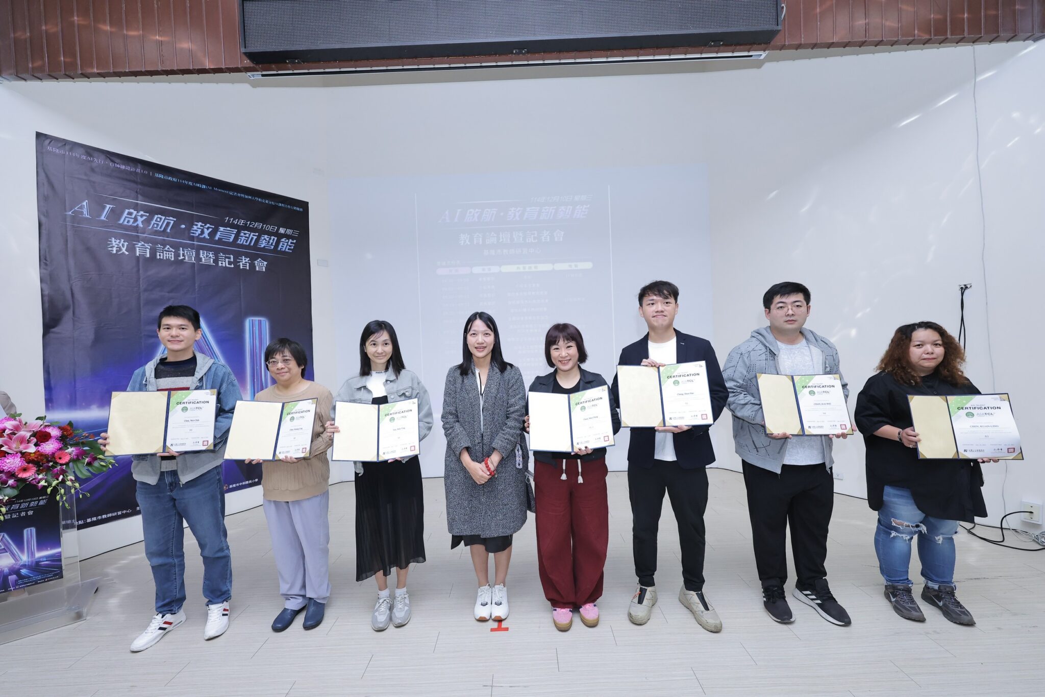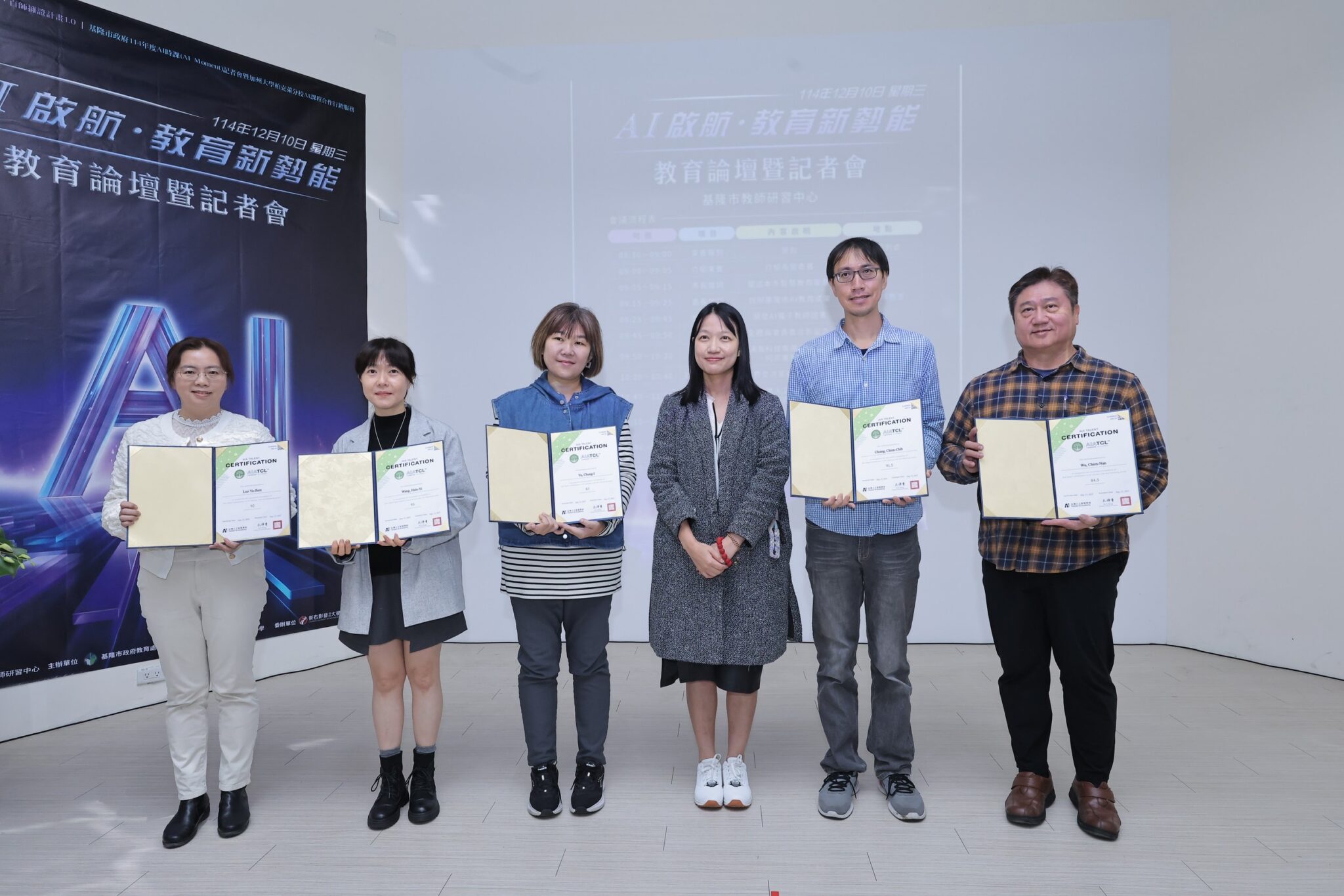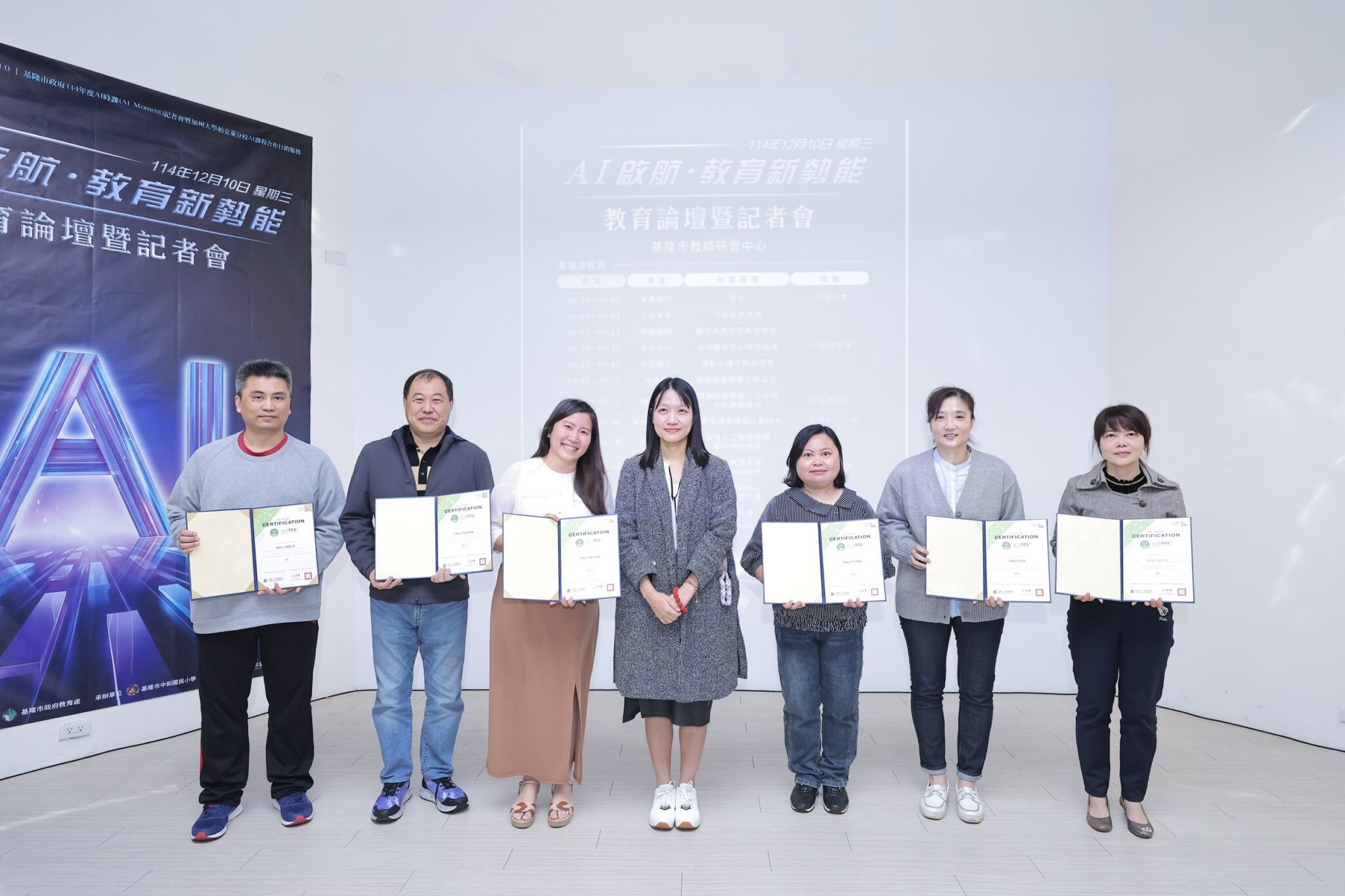 在今日的活動中,也針對通過考試取得AI素養認證的62位教育人員進行授證儀式,論壇邀集多位AI產官學界重量級講者參與,包括台灣人工智慧學校校務長蔡明順,分享AI人才培育的戰略;國立台北教育大學副校長劉遠楨,介紹AI融入教學與研究的成果;以及亞洲創新中心執行長陳淑敏,解析AI產業與教育合作的發展機會,為基隆未來的AI教育政策注入前瞻洞見。