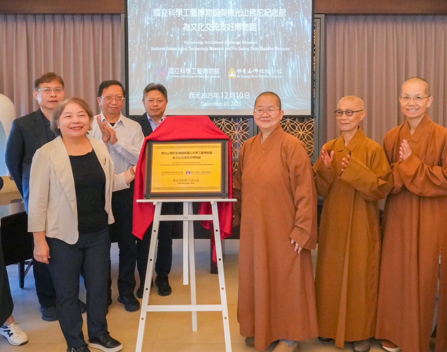 國立科學工藝博物館(科工館)日前於佛光山佛陀紀念館(佛館)禮敬大廳與佛館共同舉行合作備忘錄(MOU)簽署儀式,正式宣布兩館在既有良好合作基礎上,將攜手邁向更具永續性的跨領域合作,推動科普教育、人文發展與社會共好。儀式由佛館館長如常法師與科工館李秀鳳館長共同主持,雙方貴賓簽署、揭牌與互贈紀念品,現場氣氛隆重莊嚴,象徵科學與人文的深度對話。