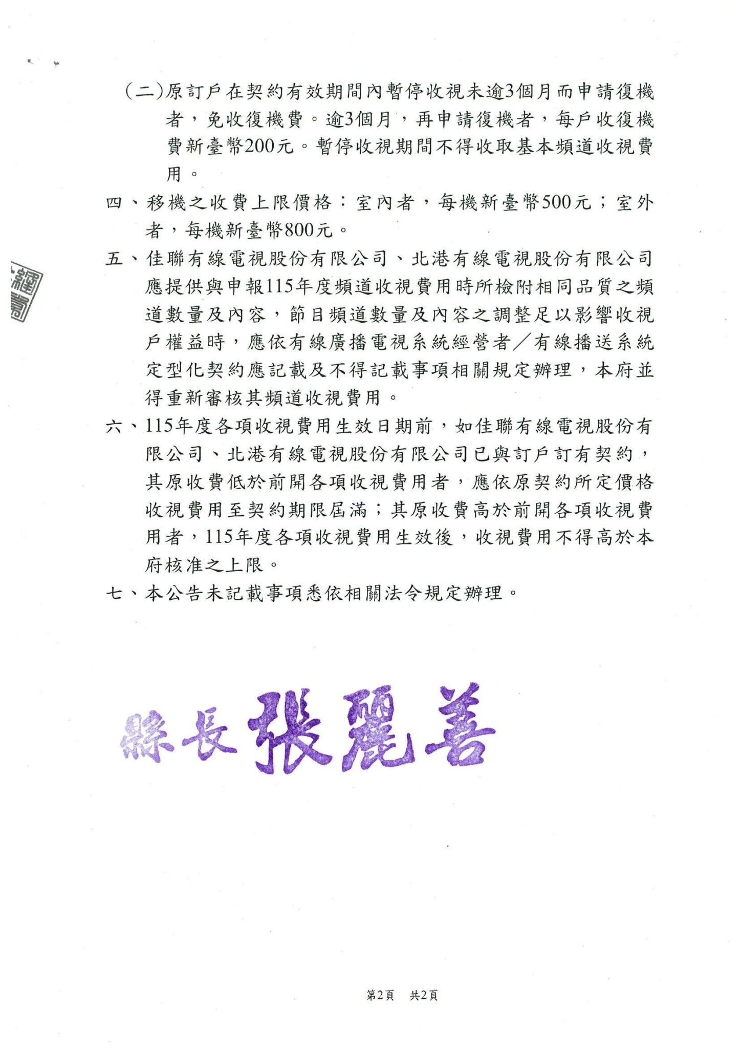 同時,本次會議亦確認兩家業者提出之裝機、移機、復機等各項工程費用,將比照114年度的既有收費標準,維持不變,確保費率透明與穩定。