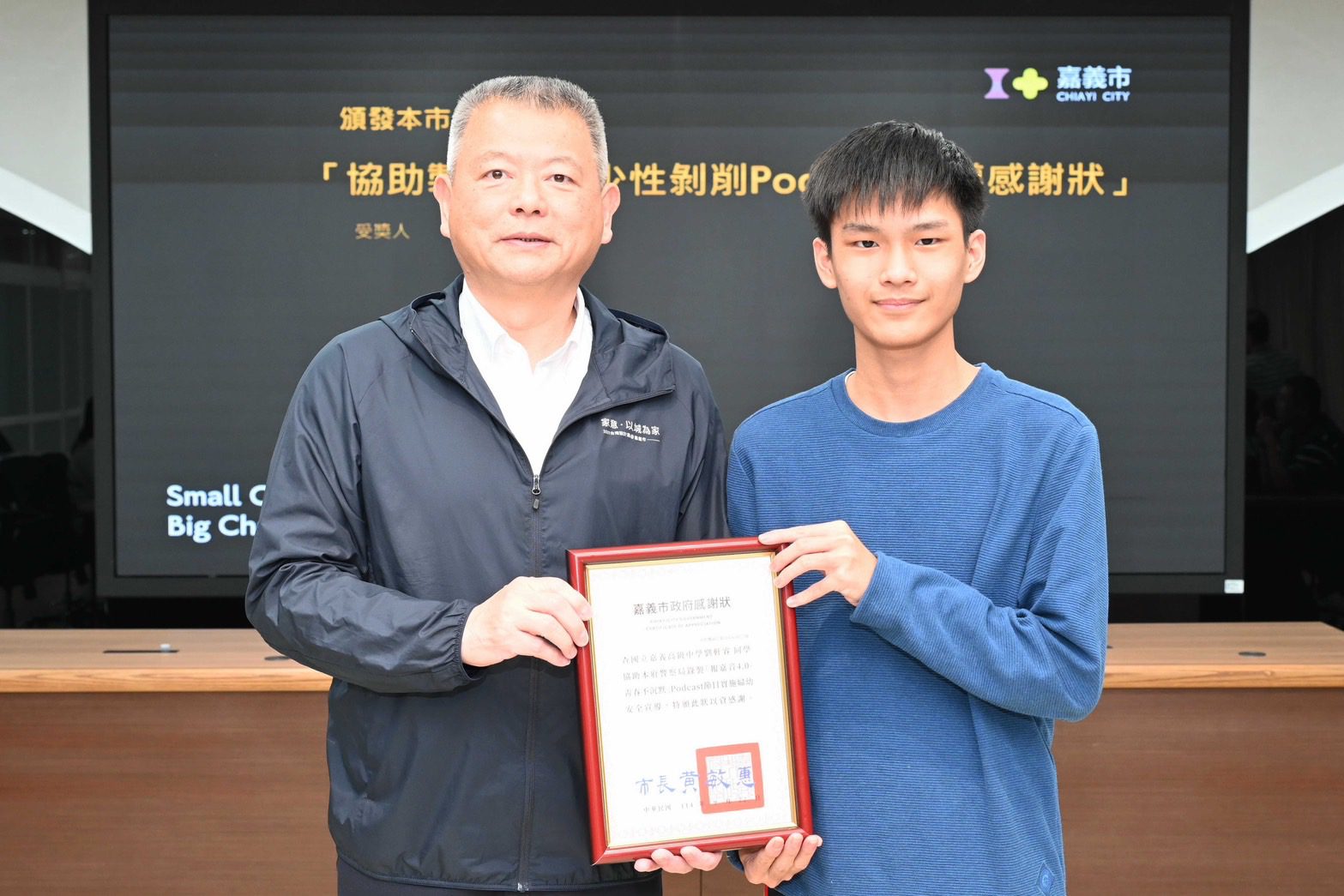 為感謝兒少代表積極投入公共事務之付出與貢獻,警察局於114年12月11日「兒童及少年福利與權益促進委員會第12屆第2次會議」中請副市長林瑞彥代表勇媽市長黃敏惠頒發感謝狀,肯定其在推動兒少權益及公共議題參與上的重要角色。