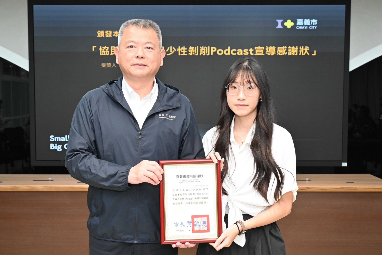 為提升兒少對網路安全、性影像風險與性別暴力防制的認識,嘉義市政府警察局與社會處、衛生局及嘉義地方檢察署共同合作,邀請嘉市兒少代表參與主持及製作教育性 Podcast「報嘉音4.0—青春不沉默」,以兒少視角傳達法治觀念,強化青年族群的自我保護意識。