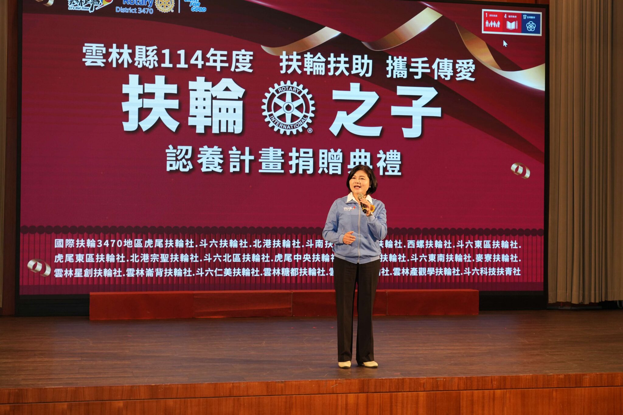 雲林縣政府與國際扶輪3470地區12日攜手於縣府大禮堂,舉行「114年度『扶輪扶助攜手傳愛』扶輪之子認養計畫捐贈典禮」。縣長張麗善感謝扶輪社透過「扶輪之子」計畫,為許多家庭減輕負擔,使孩子能在沒有後顧之憂的情況下安心向學,為雲林注入持續不斷的希望與溫暖。