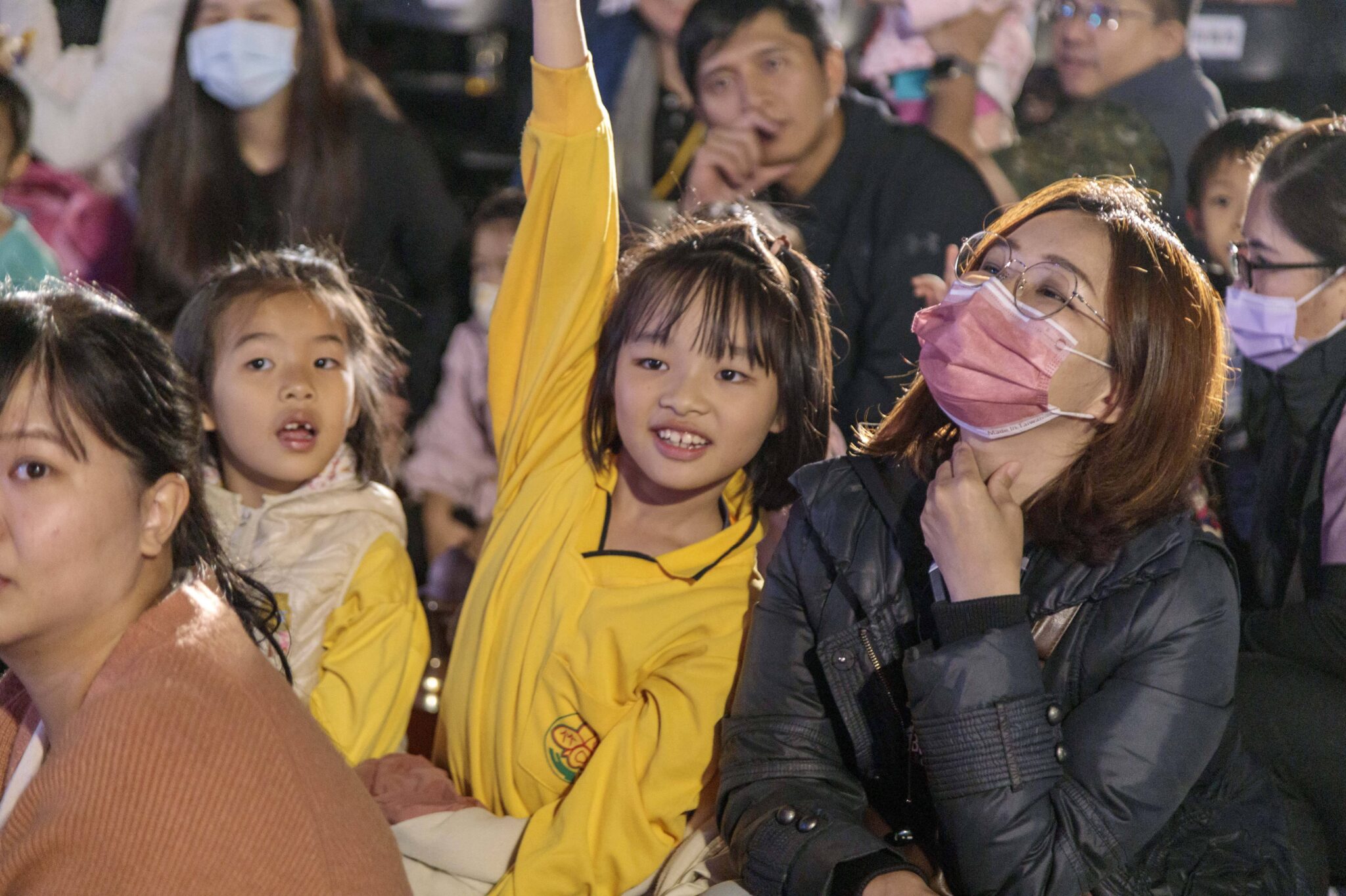 開演前,主持人介紹包括蘭花指、劍指等基本手勢,孩子們有模有樣學起身段,並熱情搶答歌仔戲知識,現場氣氛熱烈。