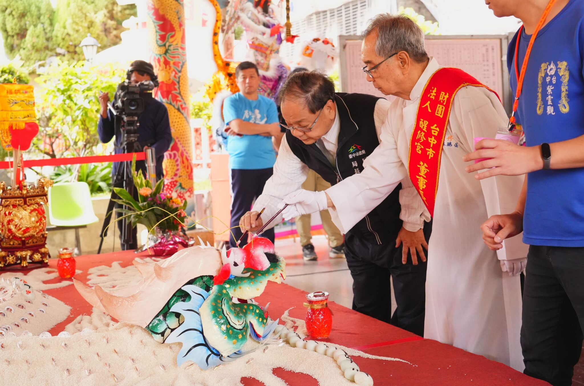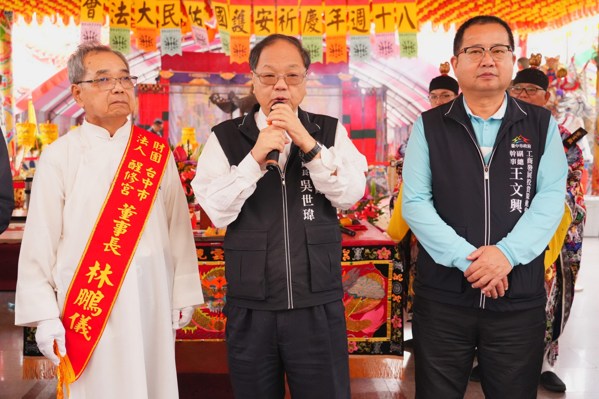 台中市醒修宮創建於民國34年,主祀關聖帝君,香火鼎盛,為地方重要信仰中心,今年適逢建宮80週年,廟方自今(13)日起一連三天舉辦「祈安護國祐民大法會」,恭請眾神為地方消災解厄、植福保泰。民政局長吳世瑋代表市長盧秀燕出席米龍開光大典,依循傳統科儀率眾團拜祈福,祈求關聖帝君庇佑市政順利、市民平安健康,並感謝廟方長年對地方的貢獻,祝福醒修宮香火鼎盛、宮務昌隆。