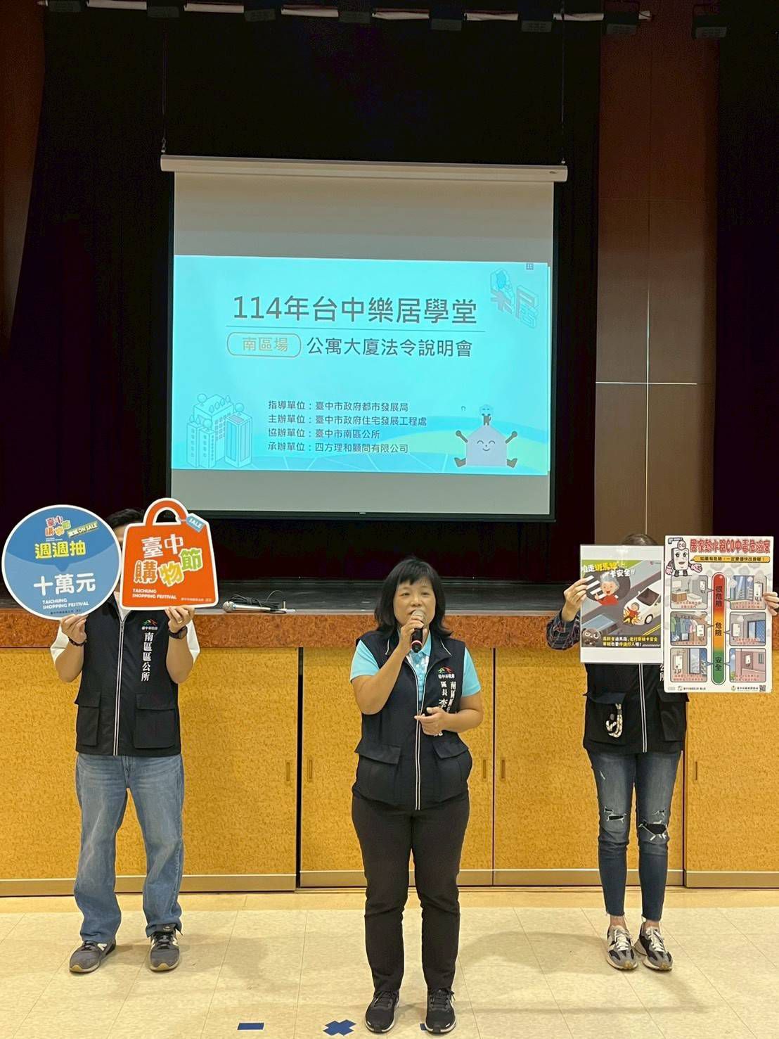 住宅處表示,透過「台中樂居學堂」課程強化社區自治,解決紛爭,建立有效率的社區管理組織,提升社區的凝聚力,各場次課程由專業講師分別針對公寓大廈規約、區分所有權人會議、管理組織事務管理等常見議題及設施設備維護課題進行講授及案例分享。考量社區管理事務的多樣性,活動也分場次邀集市府機關宣導公寓大廈相關法令與政策,如噪音、騎樓違停處理方式、社區消防安檢、公共安全申報及外牆磁磚剝落處理等內容。今年度總計舉辦6場次「台中樂居學堂」,總計吸引近八百名公寓大廈社區管理組織成員、管理服務人員及住戶參與。