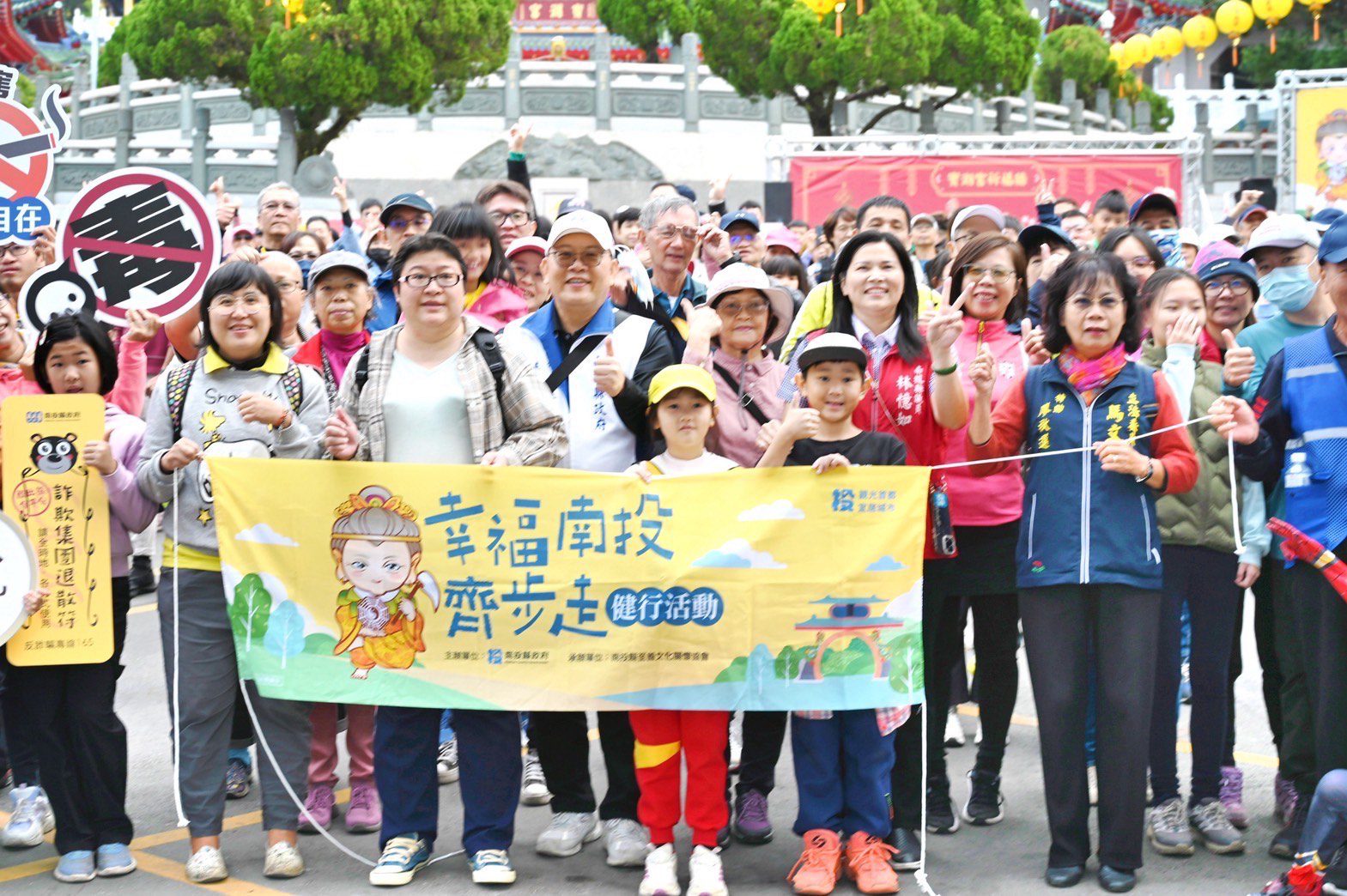 南投縣政府結合在地文化與自然生態,於今日 (14) 在埔里著名景點寶湖宮天地堂地母廟舉辦「幸福南投齊步走健行活動」。本次活動以「健康生活 × 樂活南投」為主軸,透過健行、祈福與音樂饗宴,結合生態及永續理念,邀請民眾一同健行,體驗兼具文化底蘊與自然風光的幸福旅程。