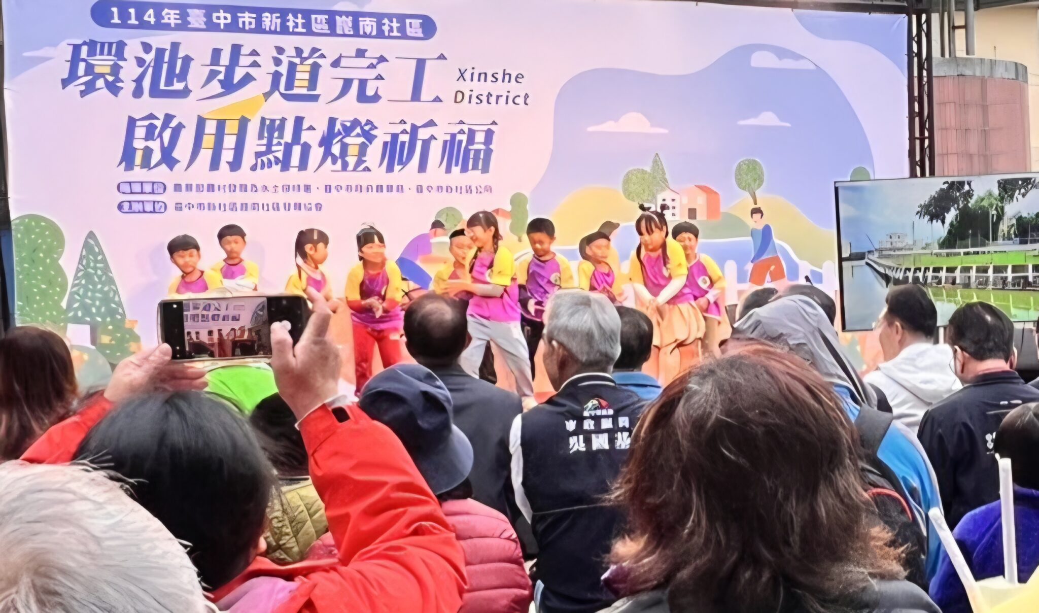 台中市新社區崑南社區發展協會獲「114年農村再生執行計畫」補助辦理環池步道改善工程,由台中市政府農業局委託新社區公所執行。工程今年順利完工,並於昨(13)日下午在崑南社區活動中心舉行「完工啟用暨點燈祈福典禮」,象徵社區環境再升級,為地方帶來更安全、舒適與友善的生活空間。