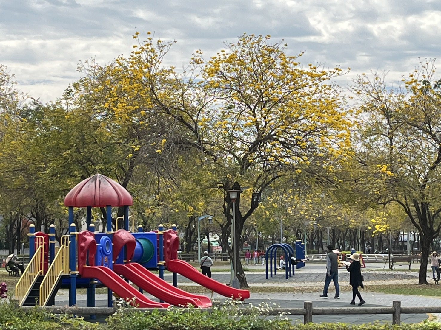 近期市區及各大公園內的風鈴木紛紛綻放,金黃色的黃花風鈴木耀眼奪目,洋紅風鈴木