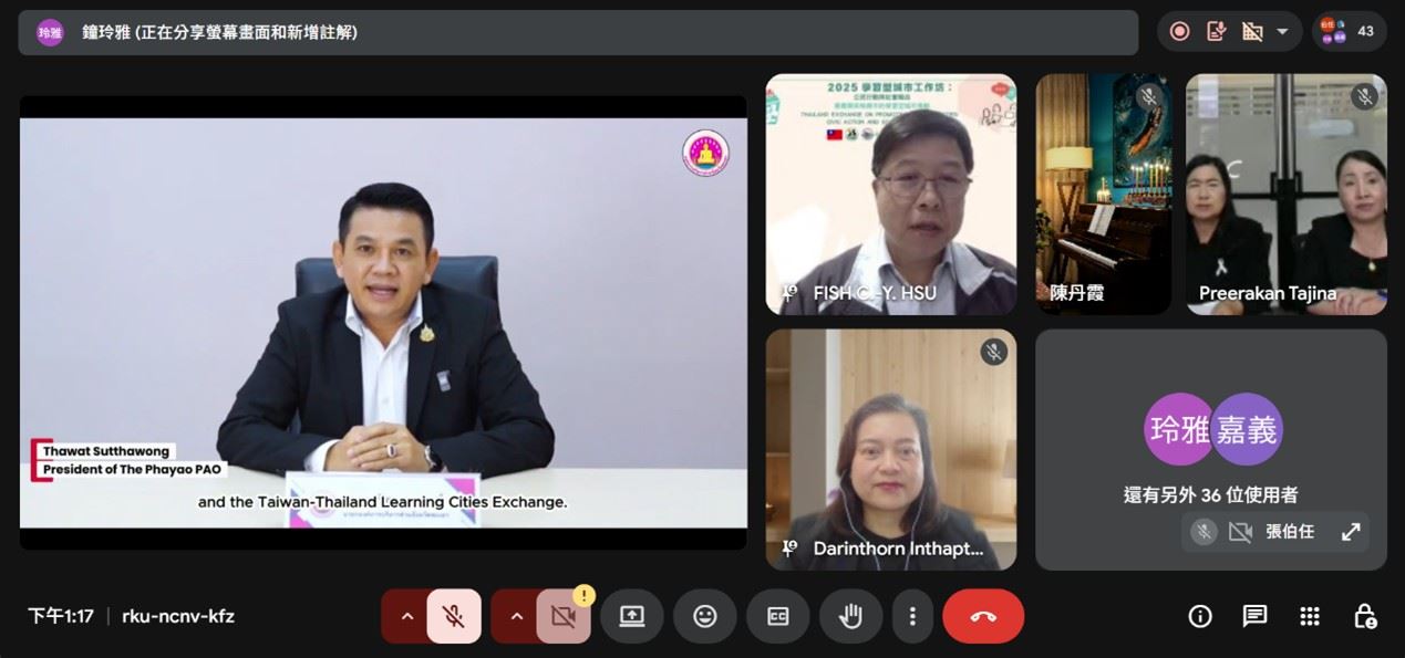 嘉義縣政府13日與泰國帕堯市(Phayao Municipality)透過線上會議共同舉辦「2025學習型城市工作坊暨臺泰學習型城市推動經驗交流:公民行動與社會融合」,嘉義縣長翁章梁拍攝開場致詞影片,強調透過交流可強化國際夥伴關係,期待未來能與帕堯市建立長期的實體互訪合作。