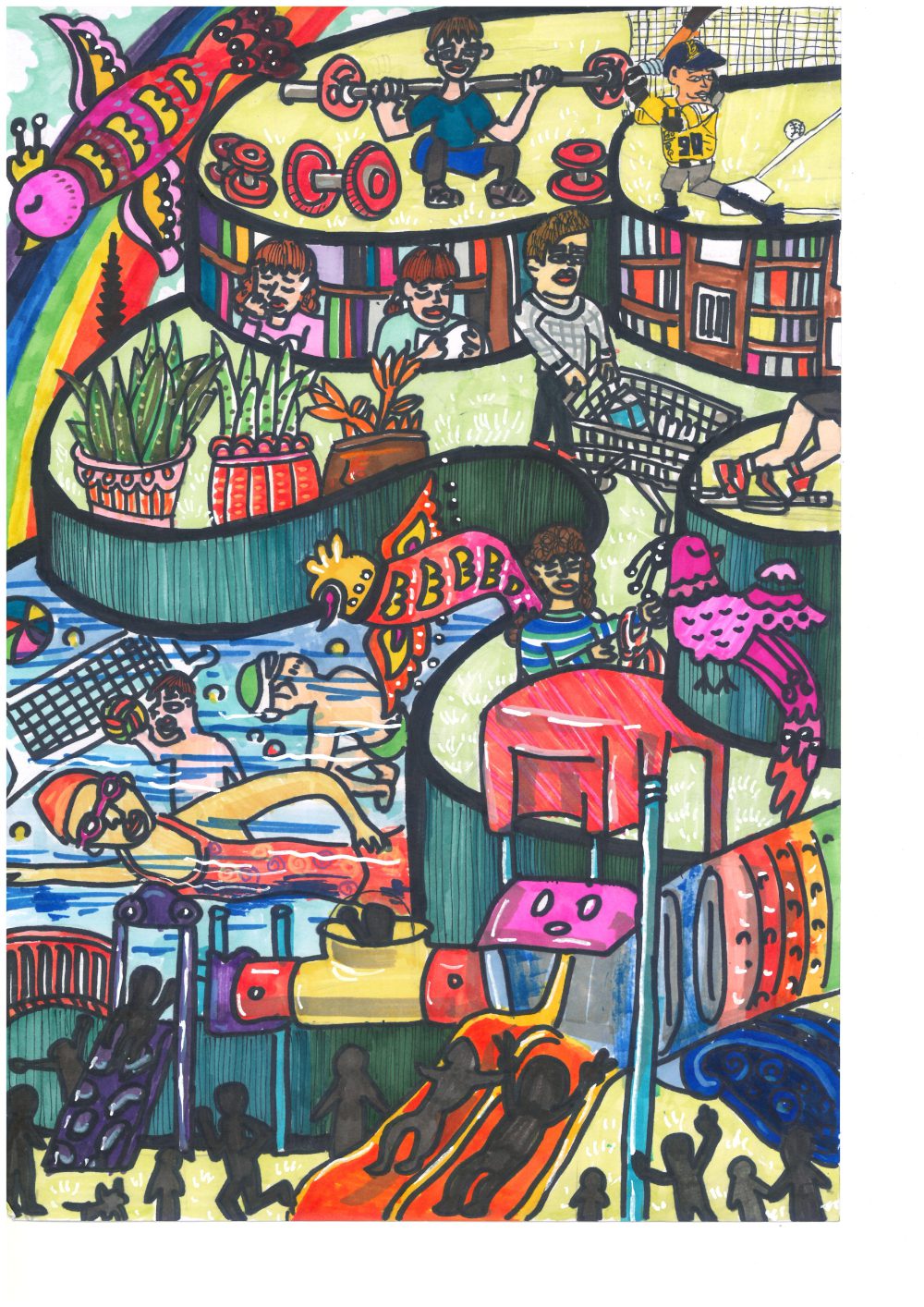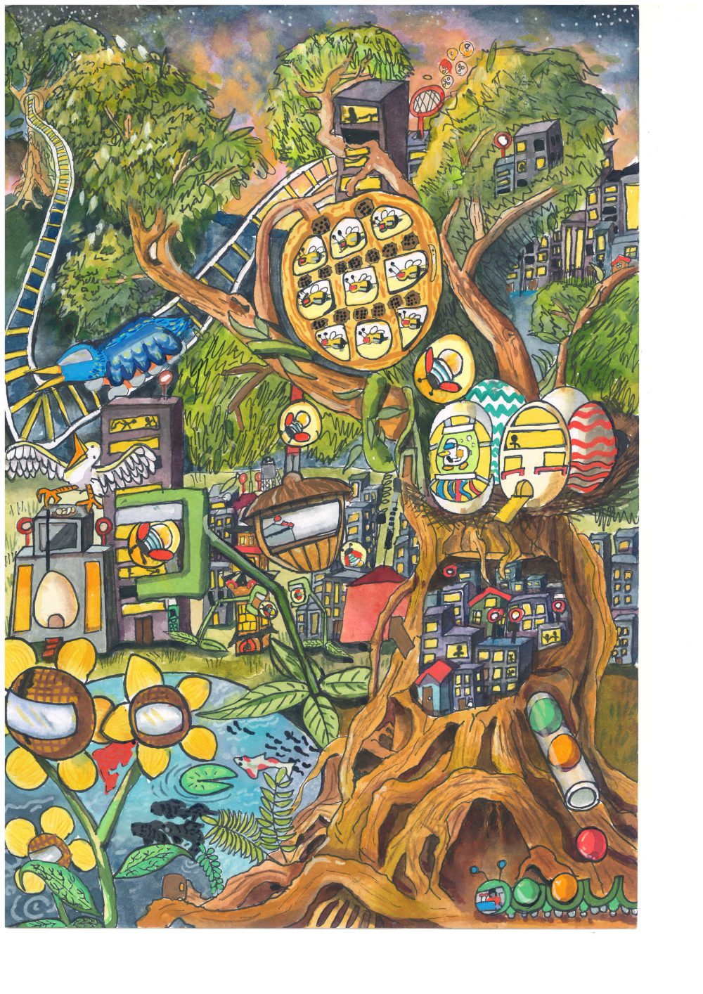 本次比賽特別邀請涵蓋建築、景觀、動畫及兒童教育等領域的5位專家學者組成評選委員會。評審委員們對參賽作品給予高度評價,孩子以直觀且敏銳的觀察力,描繪心中的理想城市風貌,筆下的都市不僅有繽紛的溜滑梯街道、與動物和諧共生的環境,以及創新想像的特色建築,更充滿各種「自然被城市重新擁抱」的創意構想。這些充滿自然氣息的創作充分展現兒童在城市議題中的獨特視角,也讓我們看見未來城市可能擁有的更多溫度、色彩與生命力。