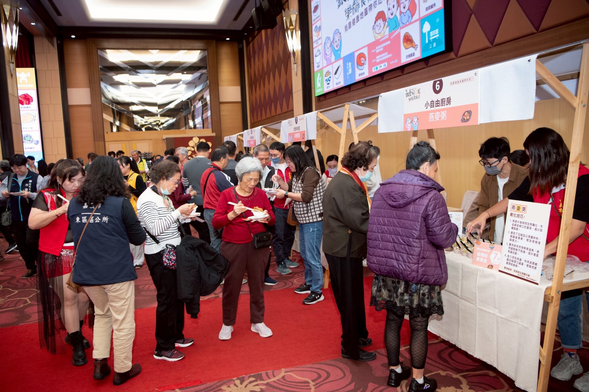今日活動現場特別邀請受輔導店家提供「七級質地調整飲食」示範餐點,興安花甲食堂與番社里巷弄站也大方展示參賽食譜,供社區據點參考與運用,期盼共同打造更完善的銀髮友善飲食環境。