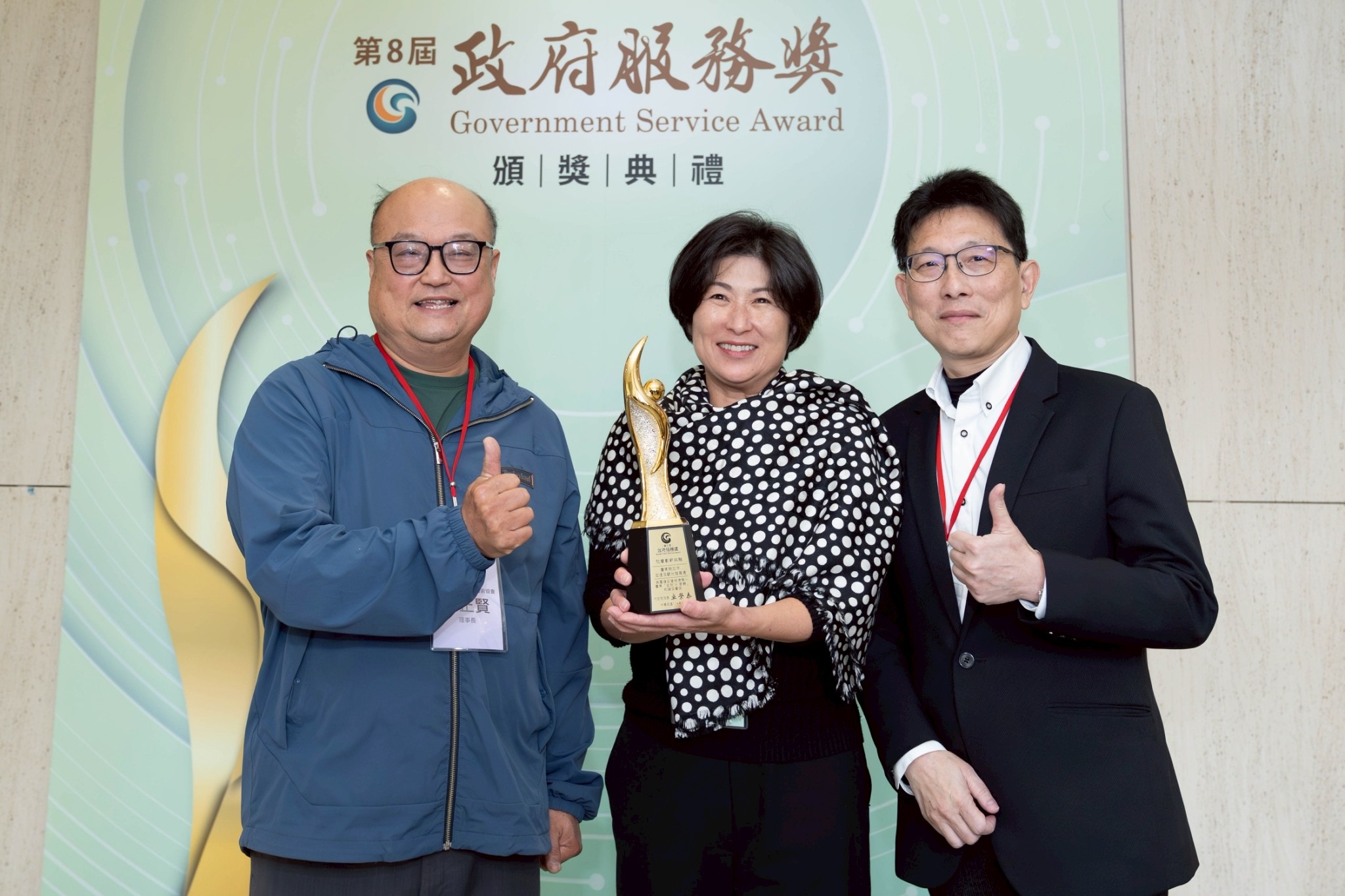 第8屆政府服務獎計有144個機關(構)報名參獎,經線上評審及實地訪視2階段,最終選出26個機關(構)與2個公私協力主要合作民間團體獲獎。行政院今日於政治大學公共行政及企業管理教育中心A2國際會議廳舉行頒獎典禮,饒慶鈴親自帶領團隊領獎。