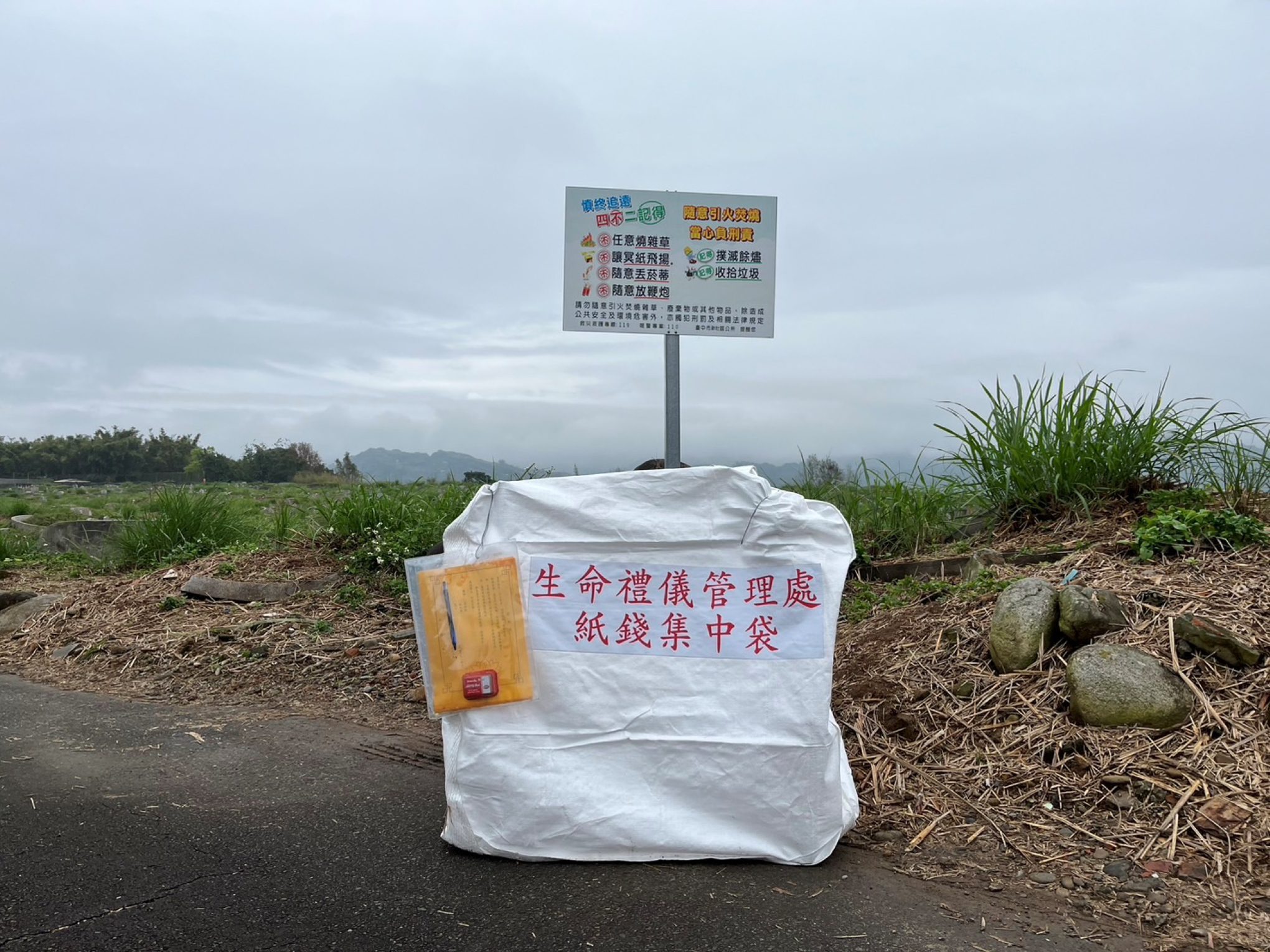 新社區第四公墓設置紙錢集中處,並備有「祭祀疏文」