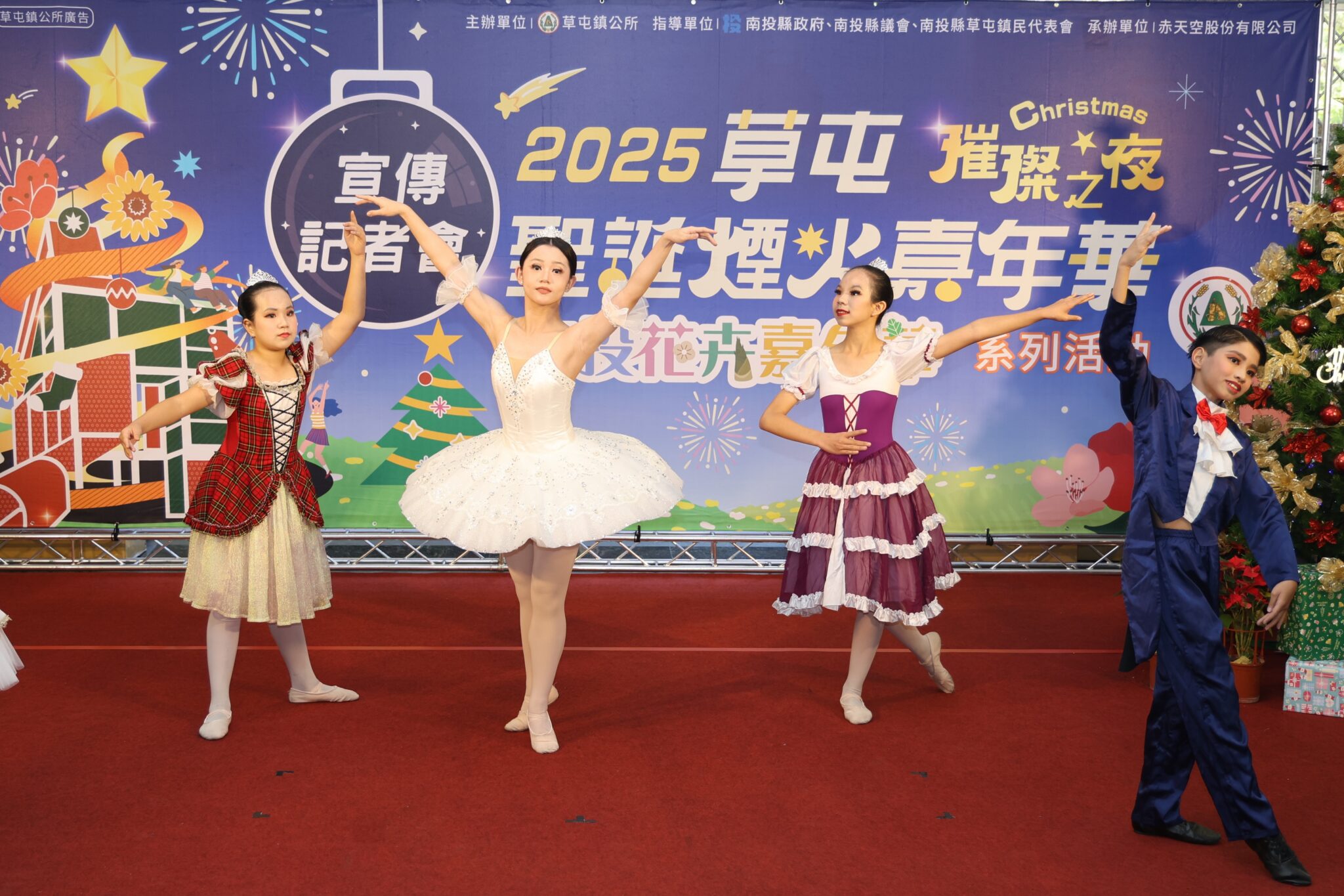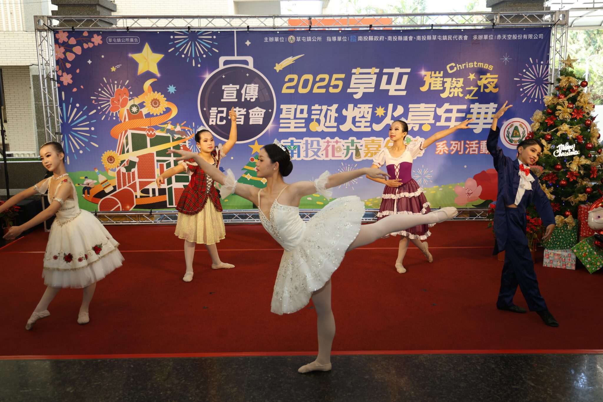 今(17)日在草屯鎮公所舉辦的記者會,由薪傳舞蹈團小朋友的精彩表演揭開序幕,草屯鎮長簡賜勝偕代表縣長許淑華出席的縣府觀光處長陳志賢,以及縣議員廖梓佑、林友友、莊士傑等佳賓,共同宣示了這場聖誕煙火嘉年華的三大亮點,包括點燈儀式、群星演唱會以及連續三場的煙火大秀。