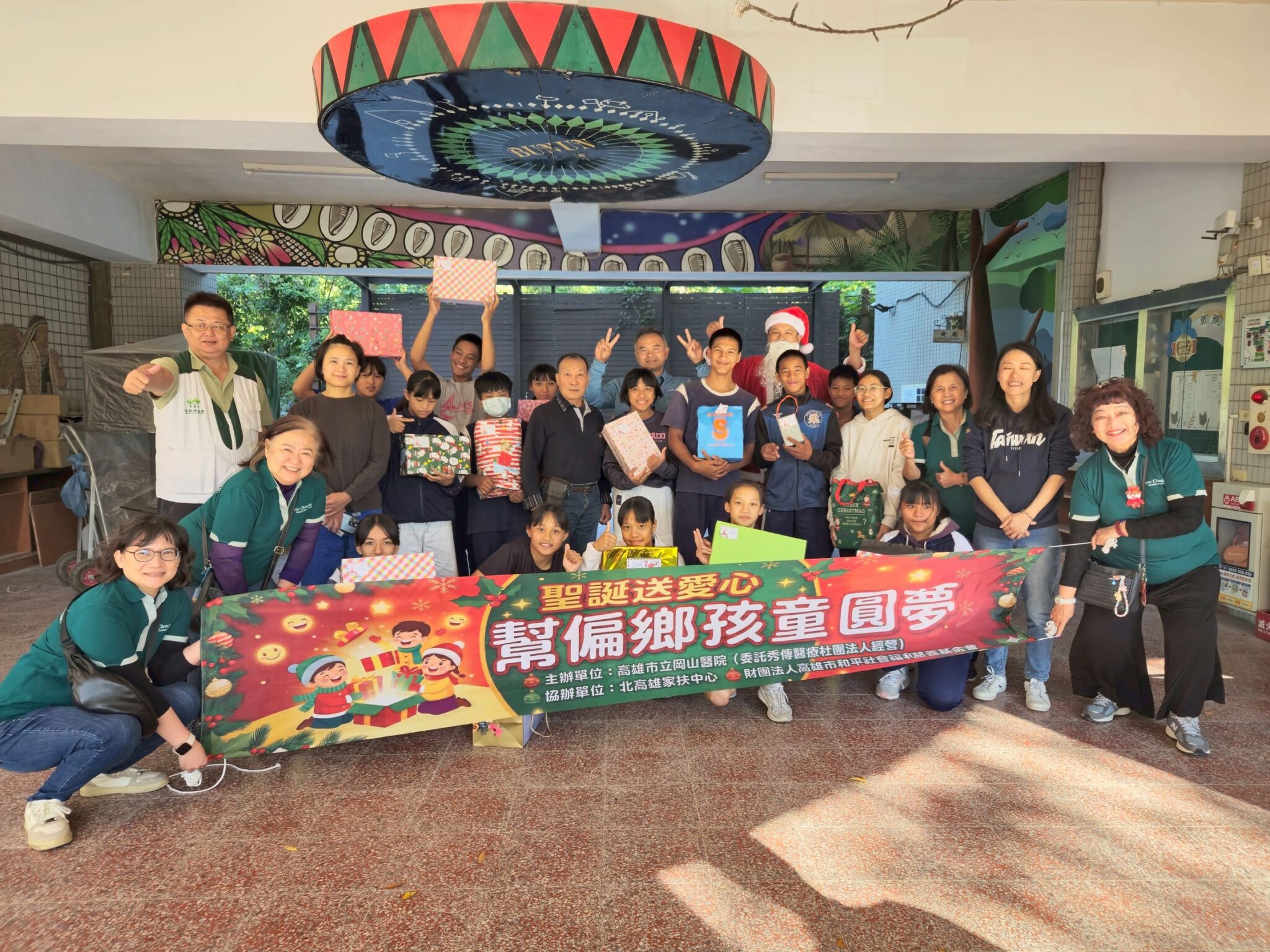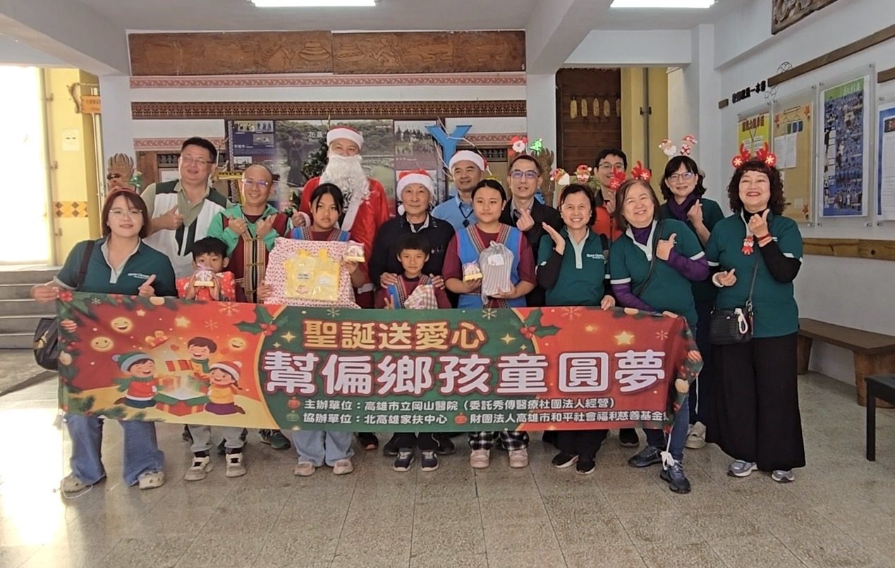 高雄市立岡山醫院長年深耕在地健康服務,更持續將關懷行動延伸至偏鄉弱勢,今年歲末之際,岡山醫院於今(17)日前往高雄市桃源區,攜手北高雄家扶中心,為當地122位兒少實現聖誕心願。此次「圓夢計畫」不僅獲得醫院員工、志工團隊、和平基金會成員及社會善心人士共同響應,連院內長照據點的長輩們也主動參與,以溫暖行動支持偏鄉孩童,透過跨世代、跨領域的力量匯聚,也讓這場溫馨活動更具意義。