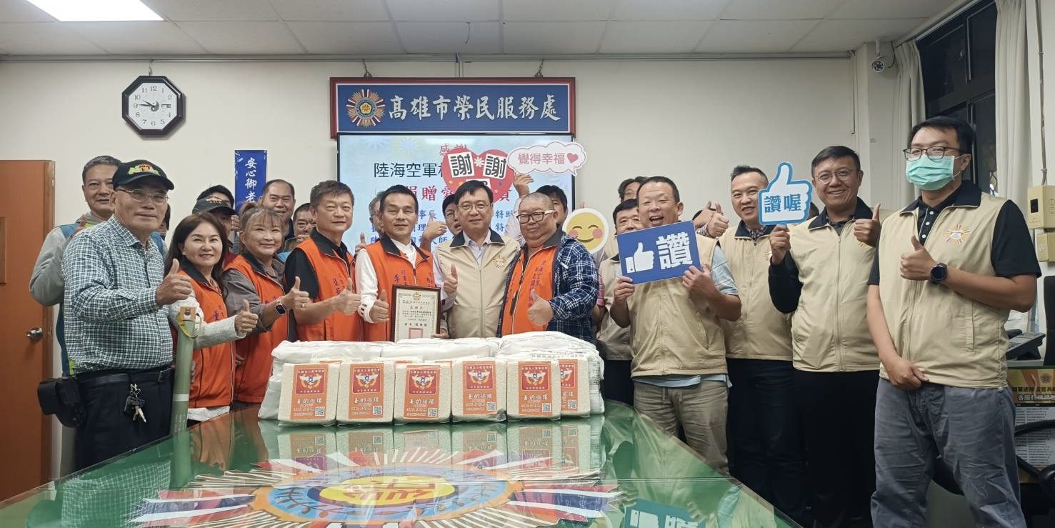 高雄市榮民服務處今(17)日與「陸海空軍相互關懷協會」攜手舉辦捐贈儀式,協會本著「互助、關懷、克儉、克難」的創立精神,長年投入公益服務,此次捐贈高雄市榮民服務處百包愛心白米,再次展現對退伍袍澤的深厚情誼。