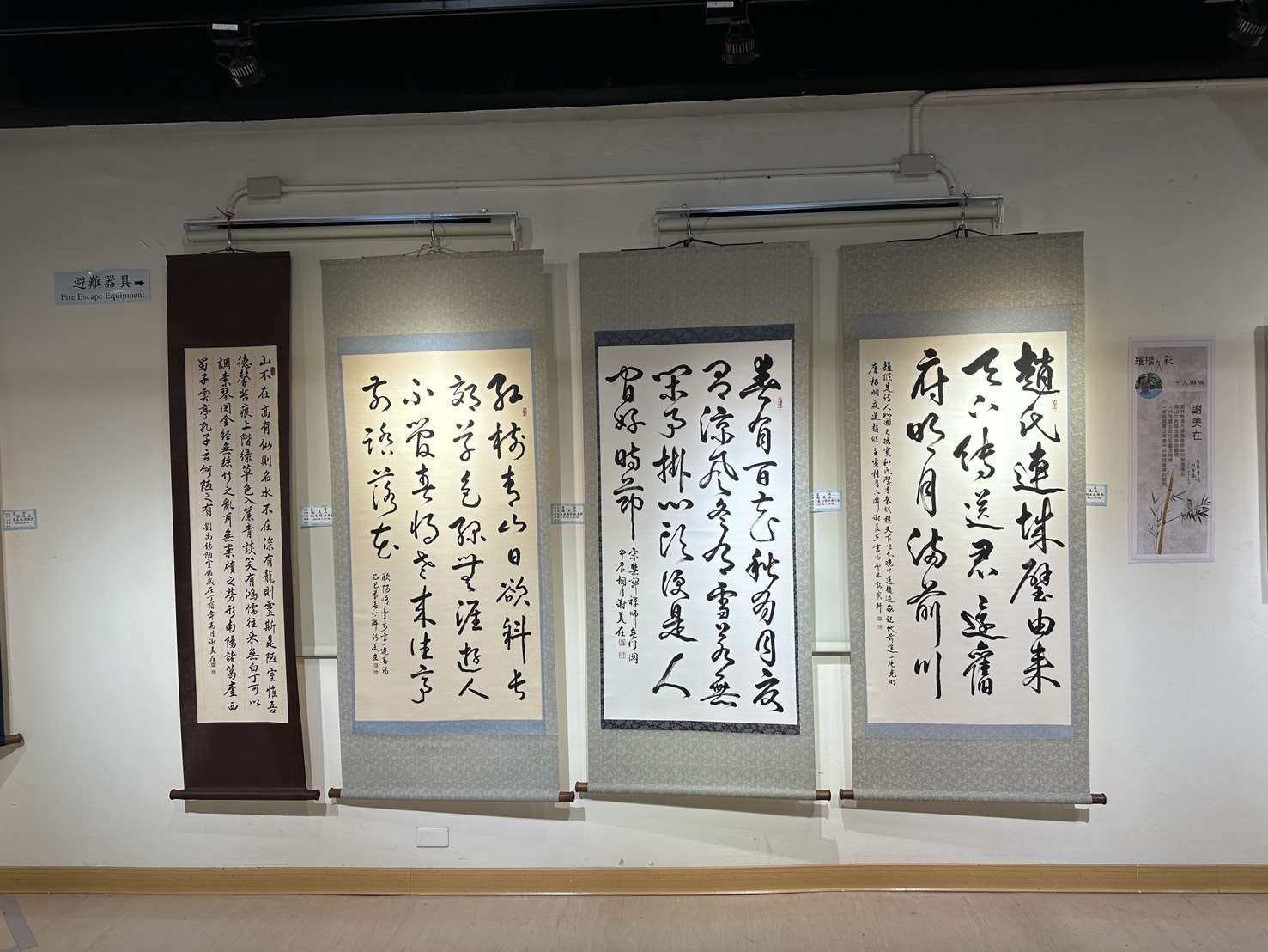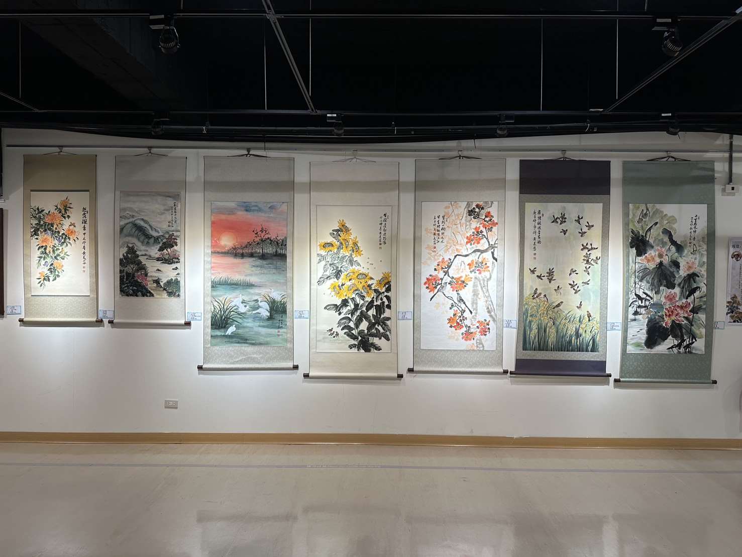 本次參展成員包括游梅香老師與謝美在、朱淑美、黃淑雲、盧秋伶、何秀桂、劉玉來、黃美蓉、賴彥臻、賴品融等書畫同好,約100件作品,風格橫跨東西方技法,從水墨的沉穩內斂、書法的筆意神韻,到西畫色彩的鮮活奔放,皆展現創作者長期研習的成果與情感厚度。