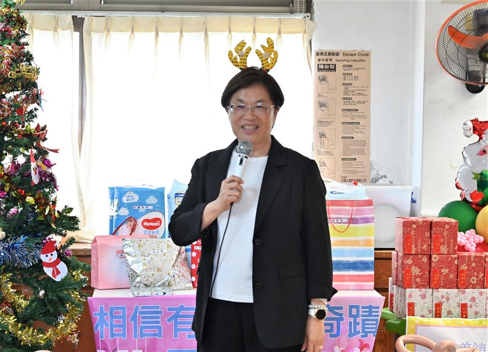 王縣長表示,聖誕節即將來臨,先預祝大家聖誕佳節快樂。彰化家扶發展學園有一群慢飛孩子,在老師細心呵護與照顧下,逐漸成長茁壯。感謝和仁國小志工的雪菁隊長,從我擔任立委時期就持續提供各種協助治療與幫助,讓孩子獲得完整照護。也提醒家長如果發現孩子出現異狀,即早接受治療,就越有更好的復原機會,縣府與所有家長一同守護孩童健康。