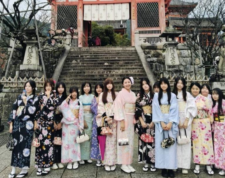 ▲義民高級中學師生至清水寺和服體驗,讓學生身體力行地感知「服飾與環境」的共生美學,學會尊重並愛護不同民族的文化遺產。