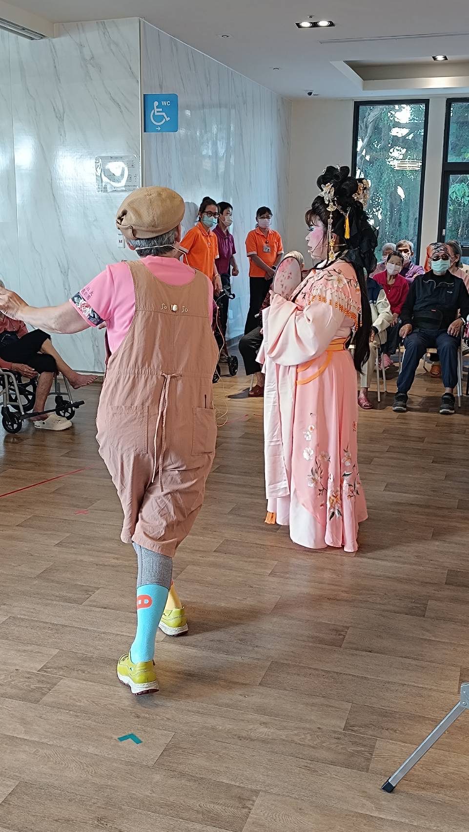 值得一提的是,參與演出的多為樂齡志工,從搬運、妝髮到登台演出,全程耗費體力,且沒有任何酬勞。但對他們而言,歌仔戲不只是表演,而是一種陪伴的方式;能看見長輩因戲而笑、因歌而樂,就是最珍貴的回饋。