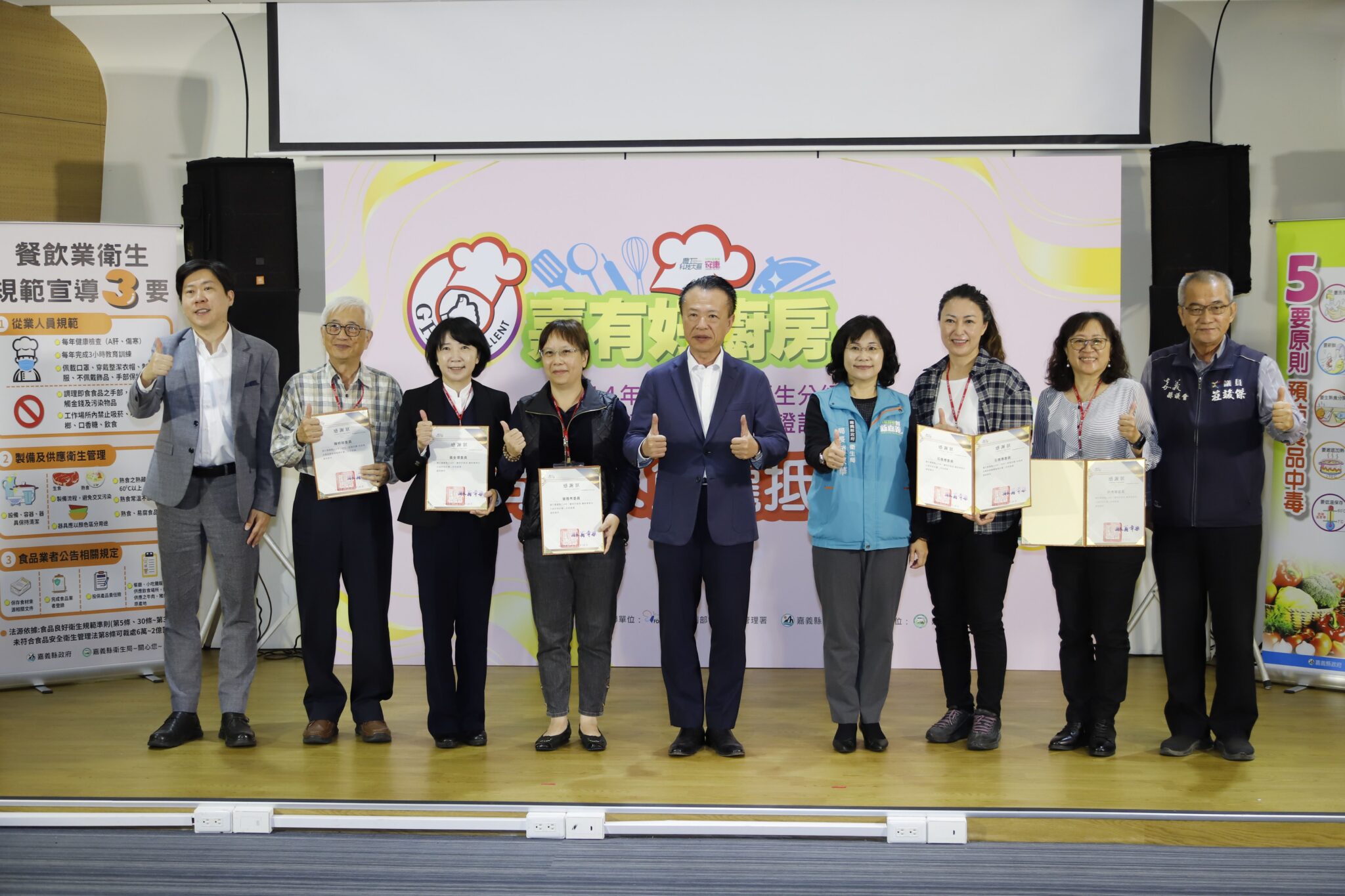 嘉義縣推動「嘉有好廚房-餐飲業衛生分級輔導計畫」,輔導餐飲及烘焙業者更具衛生管理全面性,縣長翁章梁今18日於永在食安大樓頒證表揚通過評核的業者,肯定把關食安的投入與努力,感謝他們建立大眾與食品之間的信任關係。
