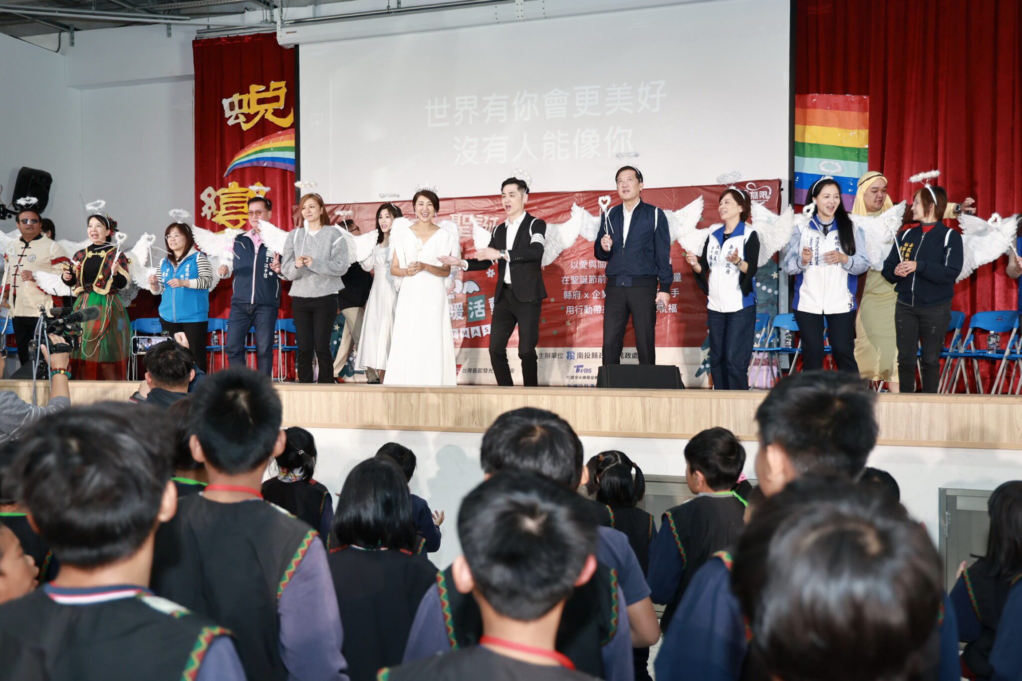 藝人林道遠亦於現場獻唱歌曲,並以自身成長過程,傳遞「愛、希望、感恩」的溫馨生命故事,許縣長也透過有獎徵答方式拉近與學生距離,最後,則由全體合唱《平安夜》,並由牧師祝福祈禱,感受聖誕節的溫馨平安。