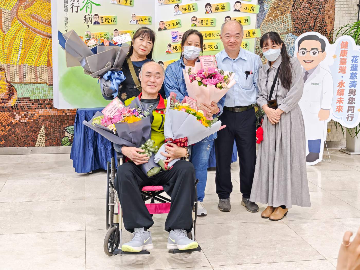 慈濟醫療法人副執行長郭漢崇醫師、花蓮慈院院長林欣榮、復健科梁忠詔醫師、骨科吳文田醫師、復健技術科林春香主任等醫療團隊皆到場支持。慈濟基金會劉濟雨副執行長與慈發處呂芳川主任也出席,為傷友們加油。