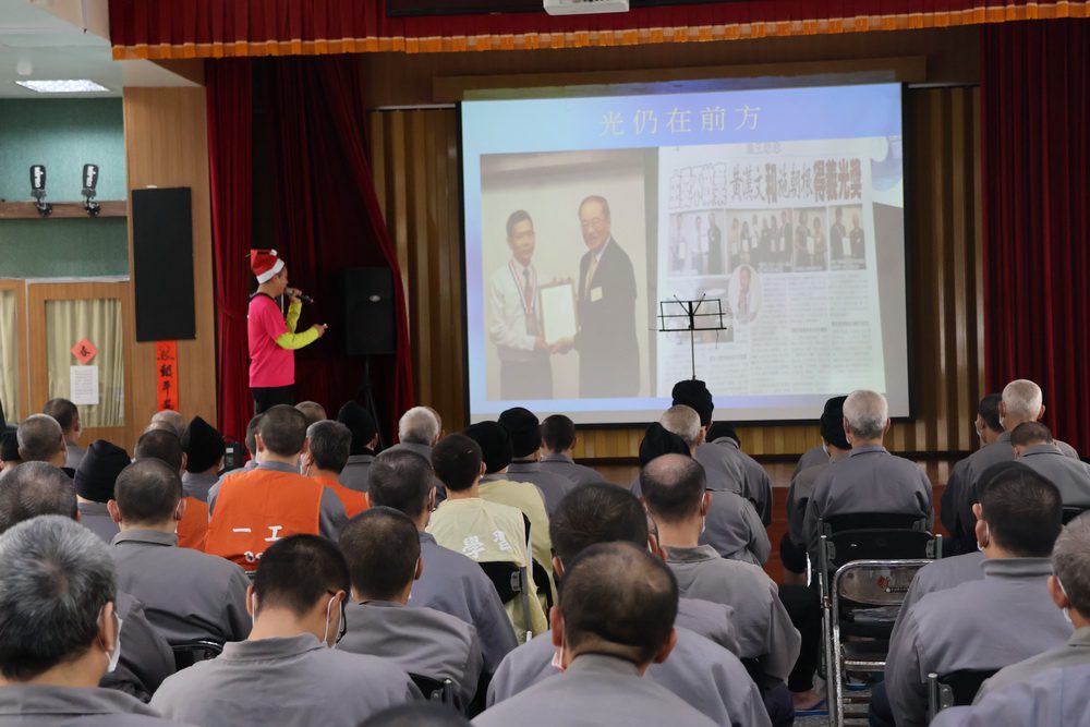 本次見證會內容溫馨豐富,首先安排多首聖誕詩歌分享,悠揚的歌聲在看守所禮堂迴盪,撫慰在場每一位收容人的心靈。隨後,特別邀請已順利復歸社會的更生人黃先生現身說法。他以自身經歷分享,在人生迷失、深陷低潮之際,如何在耶穌的引導與更生團契志工的陪伴扶持下,逐步找回方向,勇敢面對過往錯誤,最終重返社會、重建美滿人生。黃先生真誠而動人的生命故事,引起在場收容人強烈共鳴,許多人眼中泛淚,現場氣氛感人肺腑。