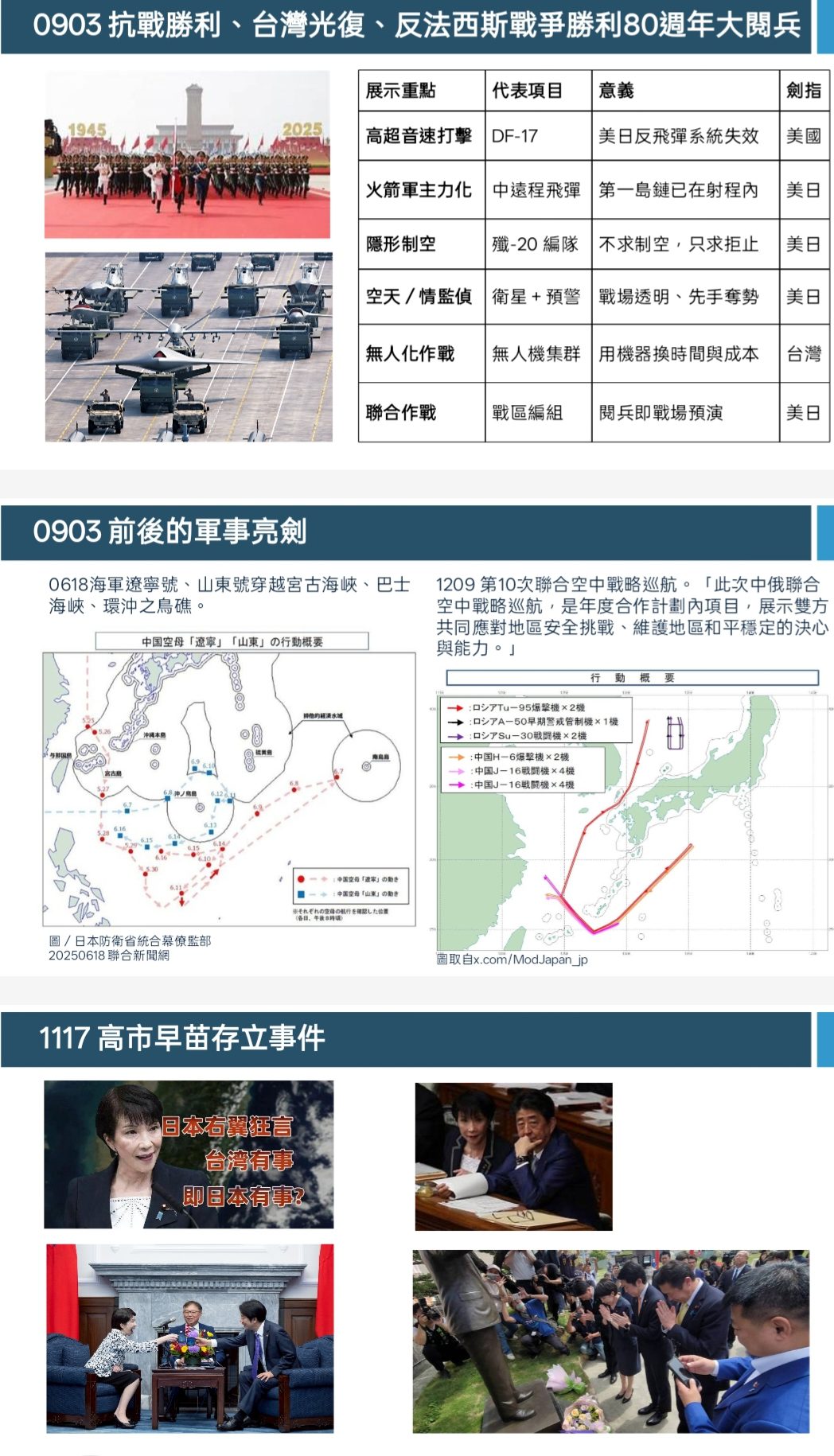 今日中國採取的策略並非一時衝動,而是有節奏的佈局。以美國911事件為例,美軍雖在一個月內報復性攻擊阿富汗,但真正改變地緣版圖的重大行動,卻是歷經十八個月準備後才展開。這一次中日衝突,或許也將是一場長期對抗。