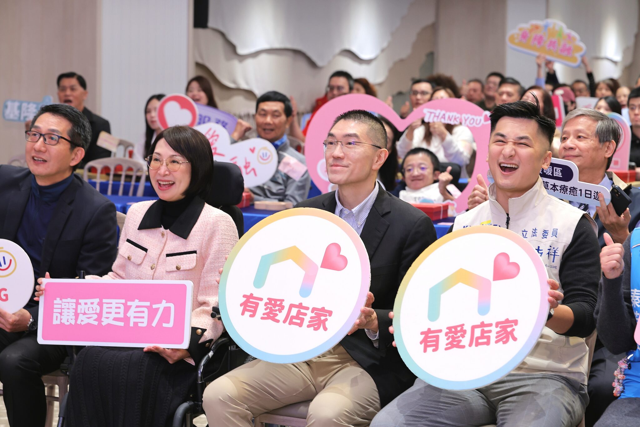 謝國樑指出,「生活不便從來不是身心障礙者的專利,而是任何人在生命不同階段,都可能面臨的處境」,這正是市府推動「有愛店家」計畫的初衷。他提到,自己目前正接受聲帶治療,對於溝通不便有更深刻的體會,因此特別以手語向所有投入計畫的店家表達感謝,並以手語比出:「大家好,謝謝大家,我愛你們。」