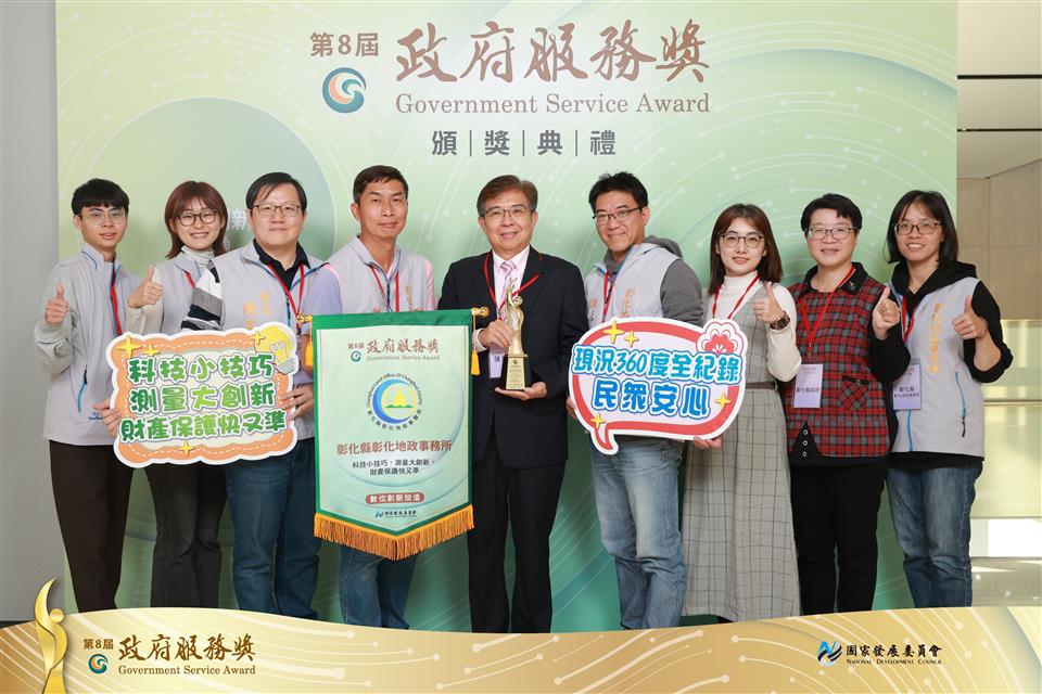 第8屆「政府服務獎」競爭激烈,彰化地政事務所在全國144個參賽機關中脫穎而出,榮獲「數位創新加值」獎項,為唯一獲獎的地政機關。評審委員肯定該所透過科技提升土地測量與財產保護的具體成效,也凸顯地政服務對民眾權益的重要性。12月15日下午於國立政治大學公共行政及企業管理教育中心舉行頒獎典禮,由行政院鄭麗君副院長親臨頒獎並致詞,對得獎機關表達祝賀與肯定,典禮現場洋溢喜悅與榮譽感。
