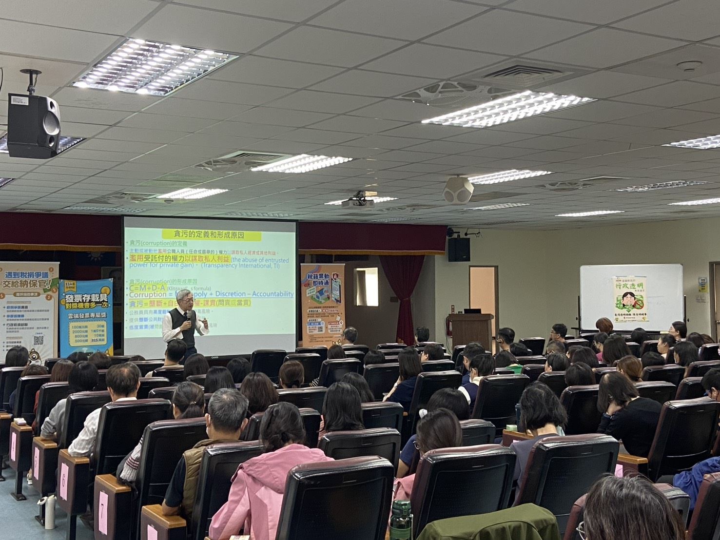 政風處長郭建毅表示,行政透明是提升政府效能和建立公信力的重要基礎,期待與會同仁從講師的專業經驗中獲得啟發,將透明與廉能治理的理念內化為日常工作中的具體行動。