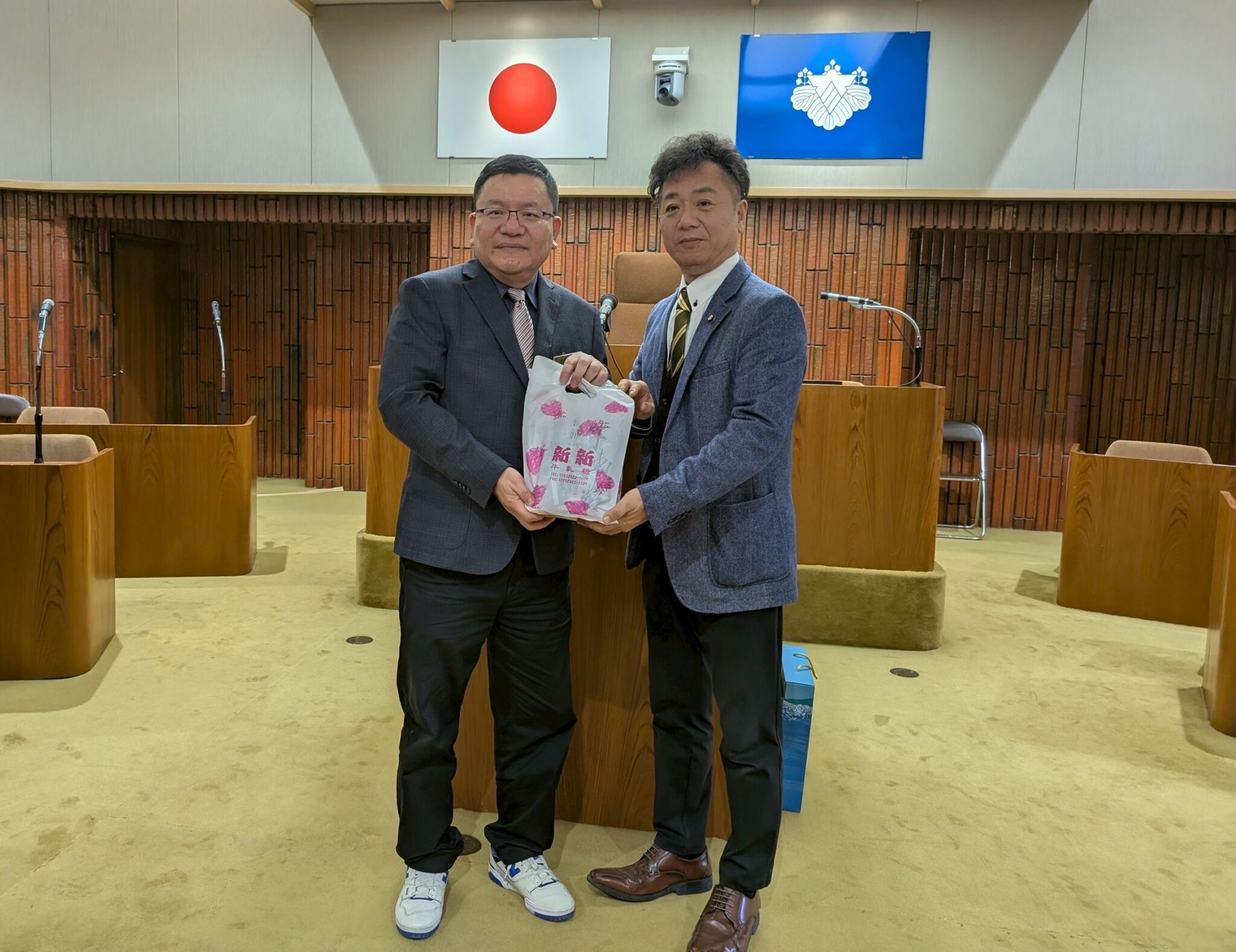 參訪團首先拜會福岡縣大川市役所與大川市議會,就地方自治體在防災政策推動、社區防災組織建構及災害應變等議題進行交流。大川市長江藤義行(えとう よしゆき)對基隆市到訪表達誠摯歡迎,並分享城市治理經驗,說明透過制度化訓練與民眾參與,建立地方政府與社區共同因應災害的運作模式。