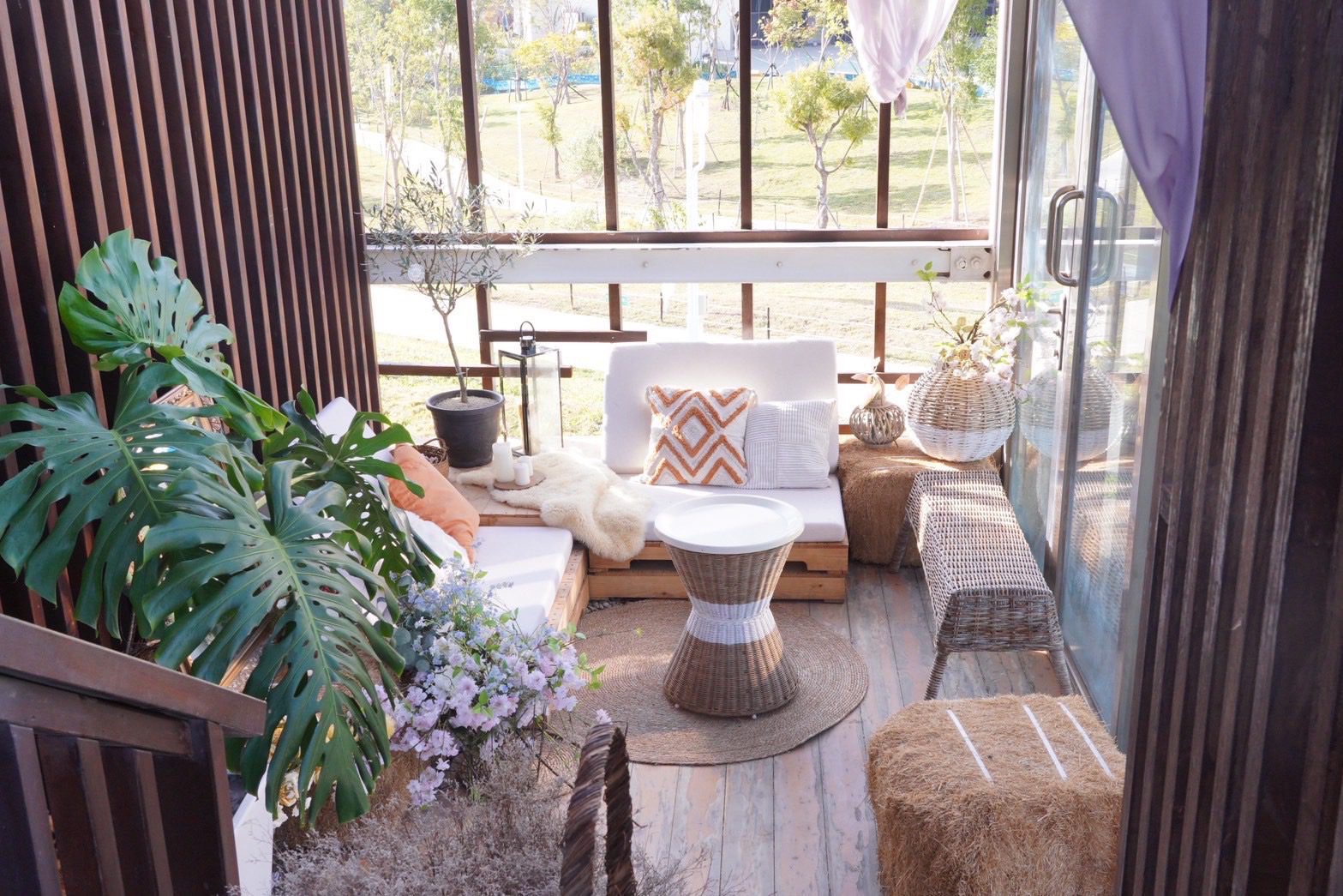 波希米亞風格休閒空間的小角落讓人能將綠美圖一覽無遺