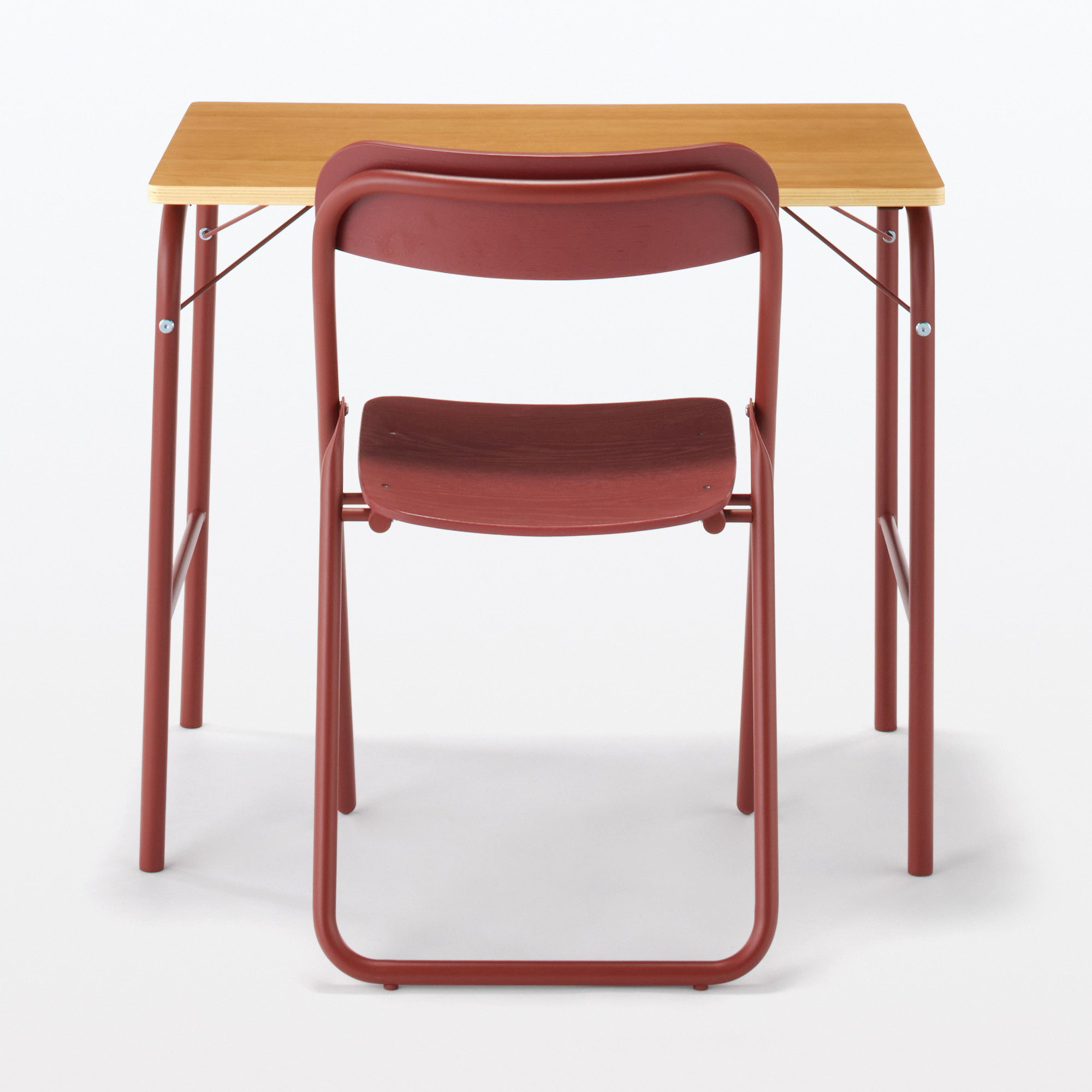 鋼製輕家具系列包含可折疊桌、可折疊座椅、可推疊椅凳與推車等,全系列以暗紅、深灰與暖灰三款顏色展開,方便顧客依據居家風格進行挑選,組裝方式簡單,包材體積也講究輕巧好攜帶。