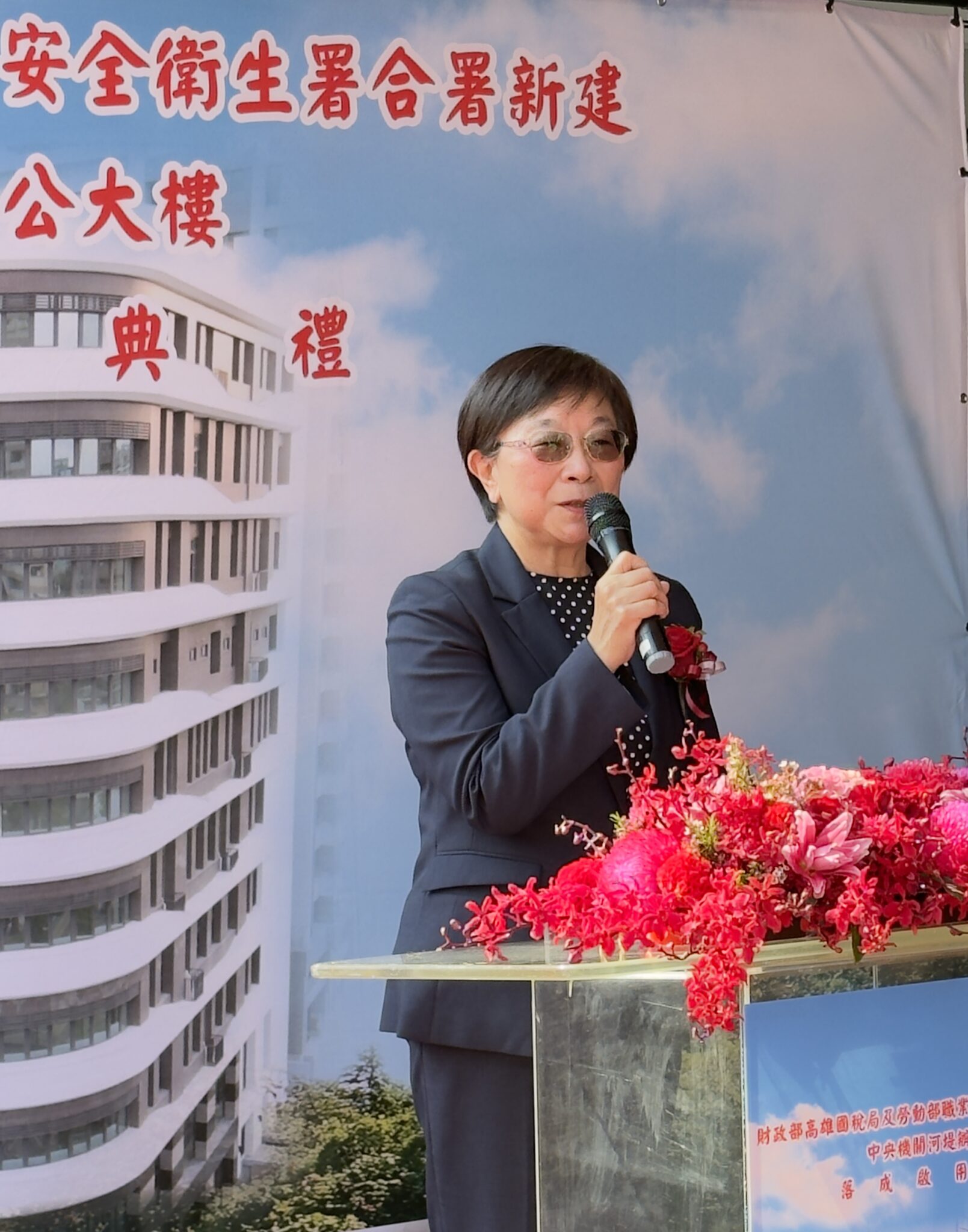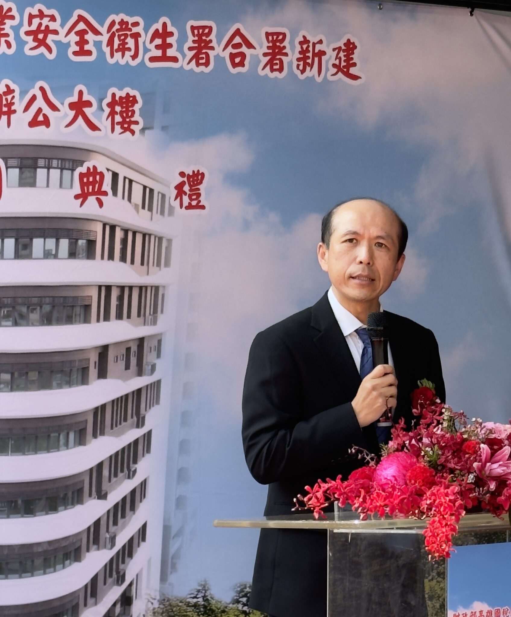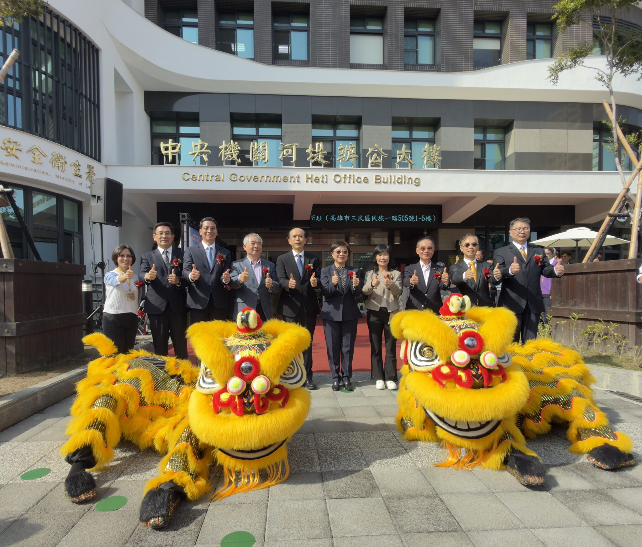 財政部高雄國稅局與勞動部職業安全衛生署合署興建所屬單位辦公廳舍「中央機關河堤辦公大樓」於114年12月22日上午10點隆重舉辦落成啟用典禮,邀請財政部、勞動部、內政部及機關團體等各界長官、貴賓蒞臨觀禮。典禮由熱火朝天的舞獅拉開序幕,並依序由財政部李政務次長慶華、勞動部職業安全衛生署林署長毓堂及李前立法委員復興等人致詞。