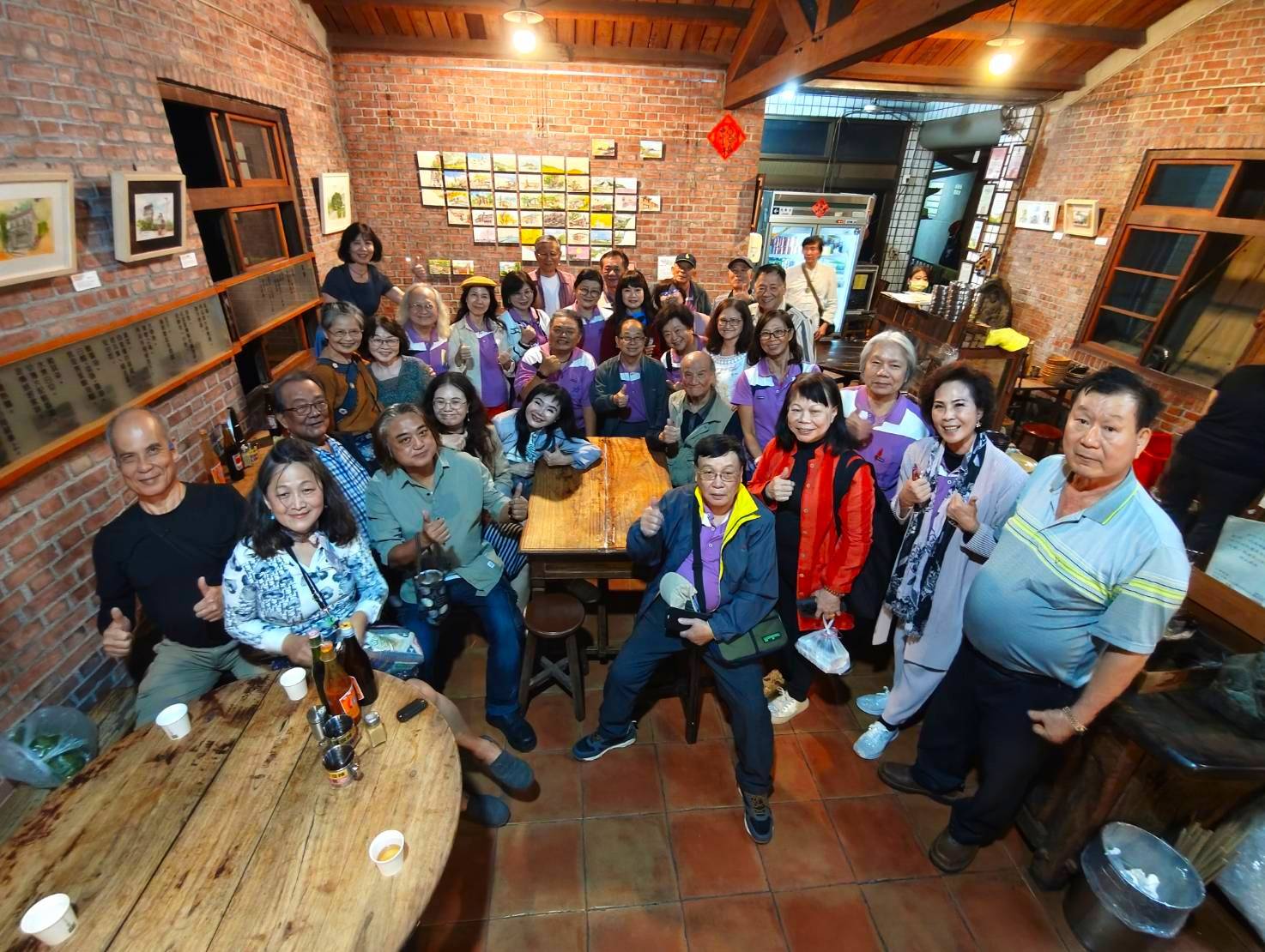 晚間餐敘由柯光慶主席作東,盛情款待與會理監事,品嚐別具風味的柴燒古早麵。同時,也欣賞柯主席於該藝文空間展出的**《速寫臺灣系列—家鄉采風個展》**,作品以樸實線條與溫潤色彩,描繪臺灣土地與人情風景,深獲與會者共鳴。