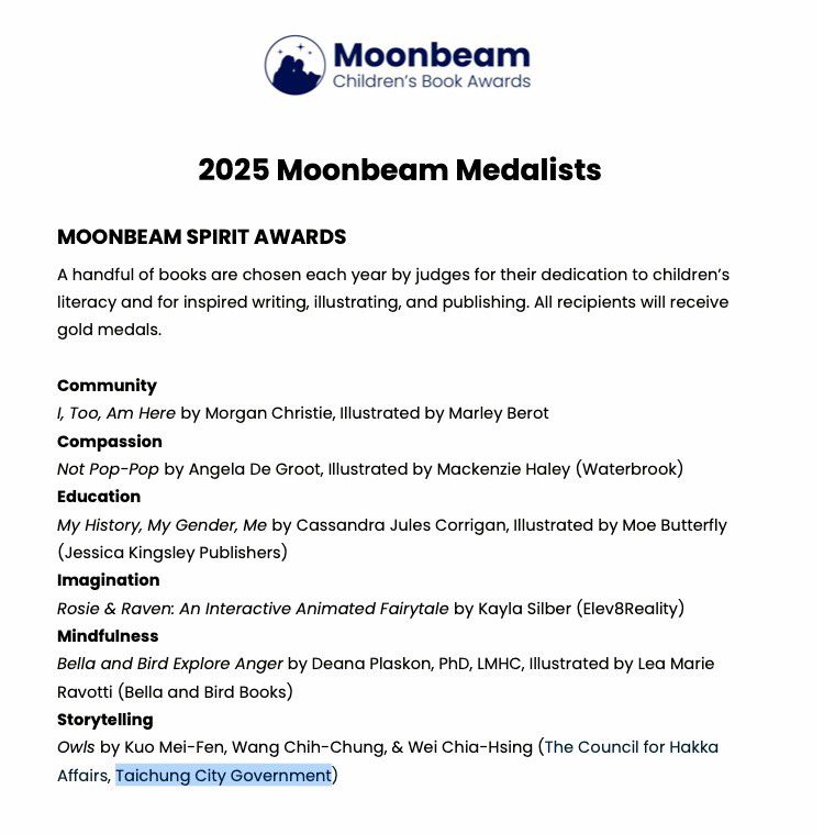 榮獲美國 Moonbeam 兒童圖書獎(Moonbeam Children’s Book Awards)2025年度評審金獎