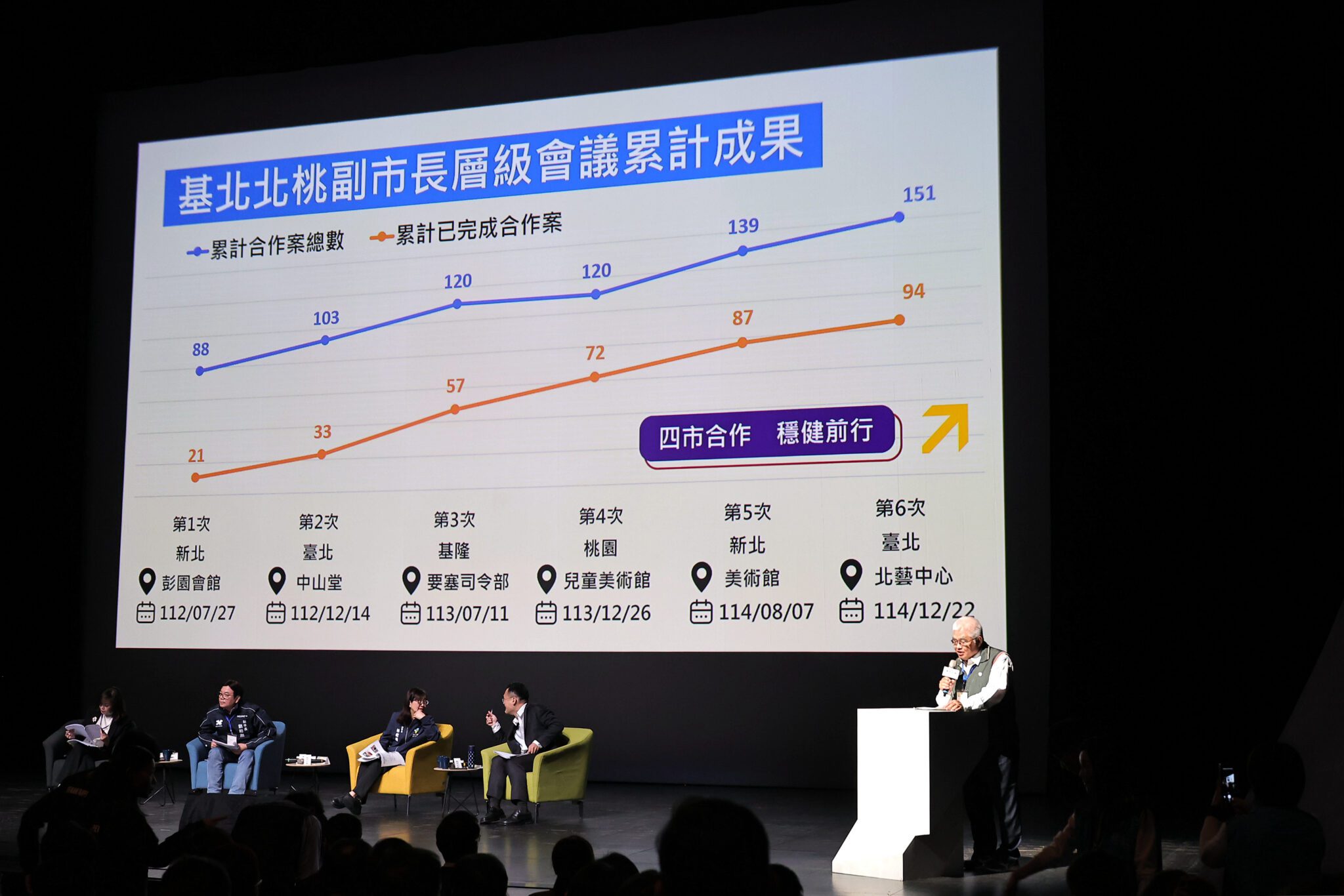 「基北北桃合作交流平臺」第6次副市長層級會議昨(22)日在臺北表演藝術中心舉行,由基隆市副市長邱佩琳、臺北市副市長林奕華、新北市副市長劉和然及桃園市副市長蘇俊賓共同主持,該平臺自成立以來,已成為全國區域治理合作的重要典範,本次會議累計推動63項合作方案,完成提請解列7案、持續推動45案,並新增11項合作提案,充分展現北台灣城市攜手推動政策的豐碩成果。