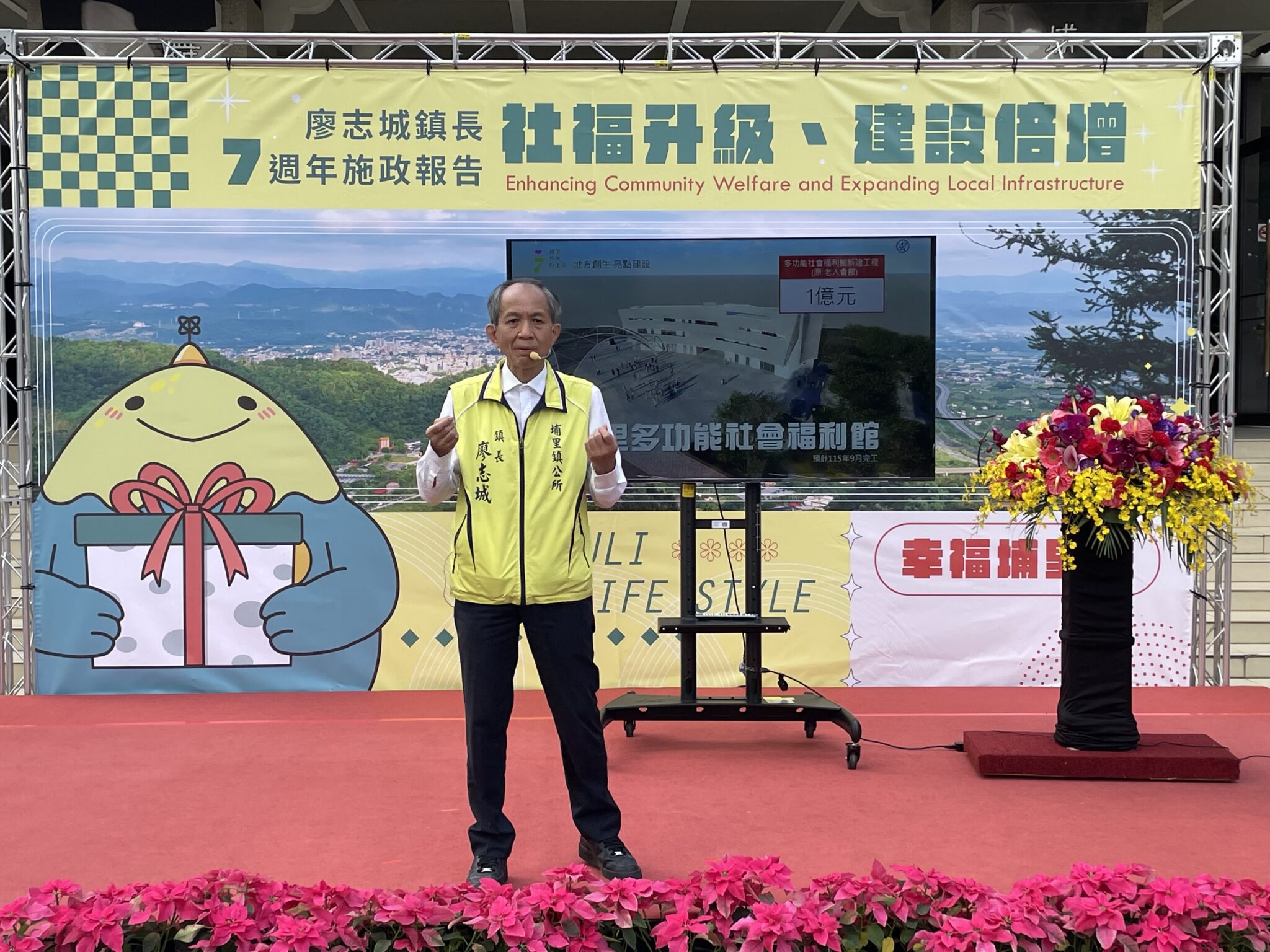 埔里鎮長廖志城就職七週年施政成果全面展現社福升級、建設倍增,攜手打造幸福宜居山城埔里鎮長廖志城就職滿7週年,鎮政推動始終秉持「與鄉親作伙生活」的治理理念,從財政體質改善出發,逐步擴大社會福利、強化公共建設、推廣觀光產業、重視多元族群文化發展,讓埔里在穩健中前進,廖志城表示,回顧7年施政,埔里鎮在社福、建設、環境、文化等各面向均有顯著提升,即便任期僅剩最後1年,公所團隊仍將全力以赴,持續為鄉親打造更宜居、更溫暖的埔里城。