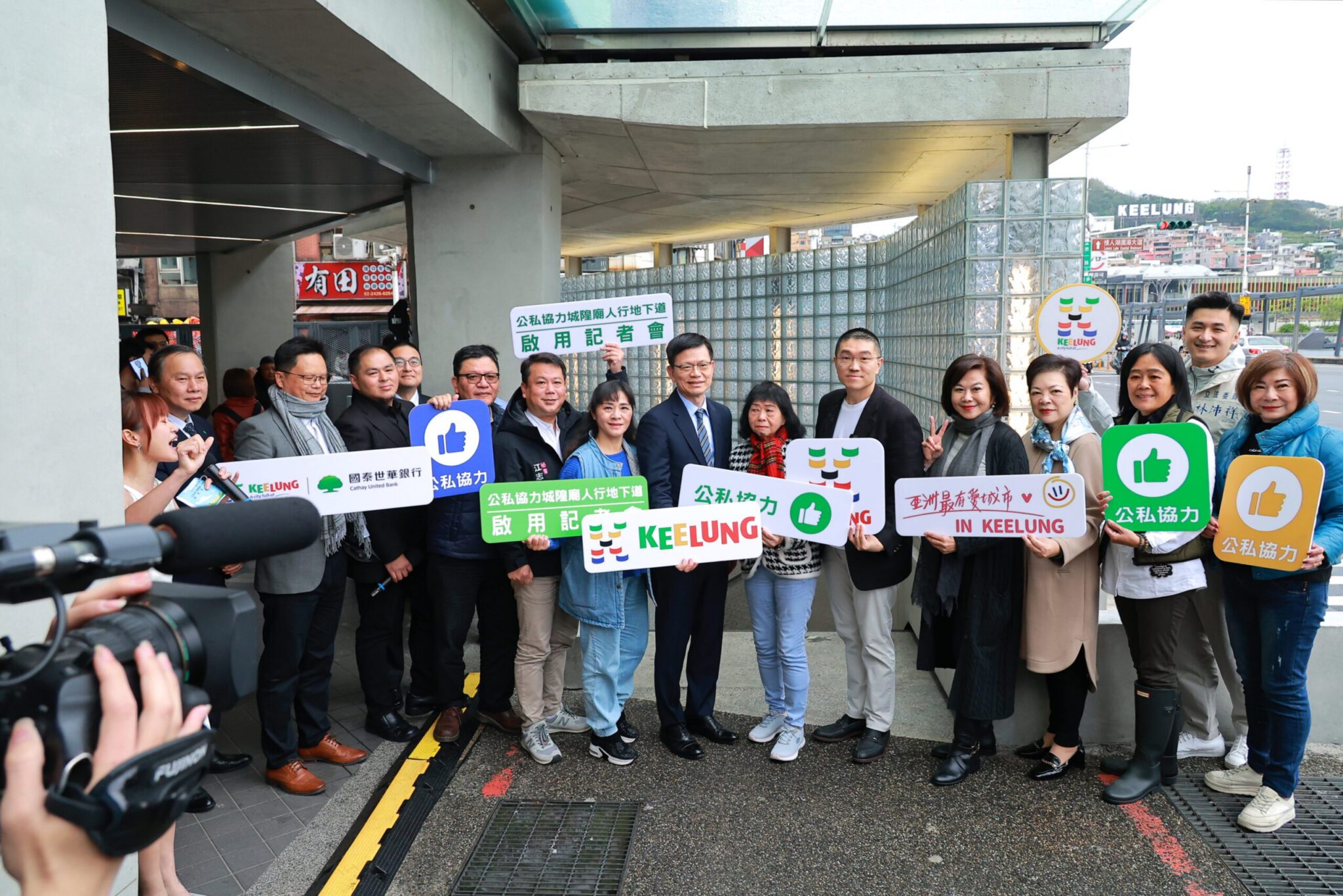 基隆市政府推動城市美化,攜手國泰世華銀行重新打造忠一孝二路口人行地下道出入口,於今(7)日由市長謝國樑、副市長邱佩琳以及國泰世華銀行總經理李偉正等貴賓一齊揭幕啟用,開啟基隆市景觀改造的新里程碑,謝國樑並表示將持續推動忠一路既有建築重塑計畫,為基隆市容再添新意。