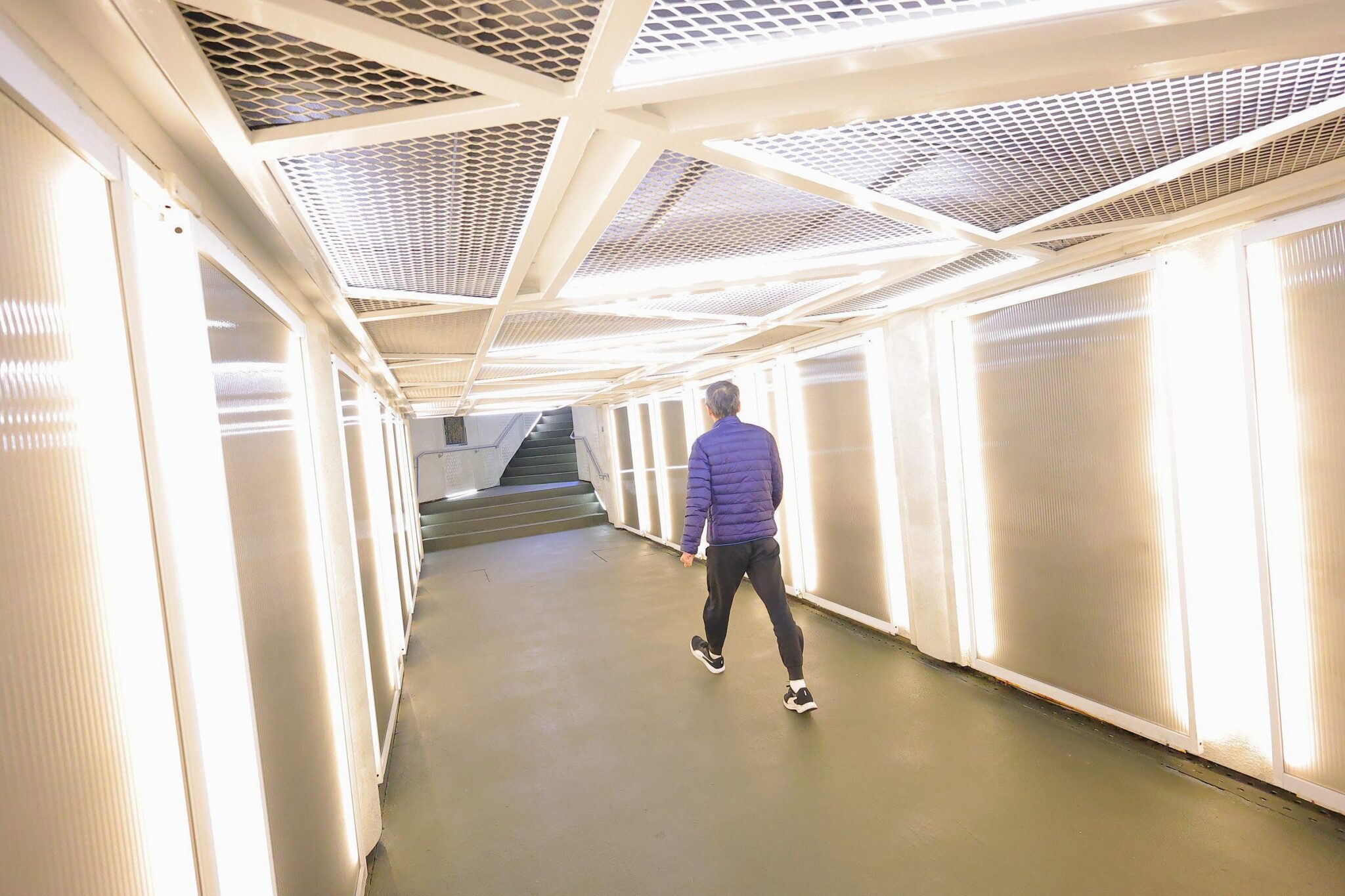 為推動這項地下道出入口美化工程,市府與國泰世華銀行自112年便開始合作契機,但其間歷經人行道轉角墩柱被撞、113年多次颱風攪局,為了維持正常通行,只能採取半半施工的方式,歷時兩年終於將這座最美的地下道呈現在市民眼前。