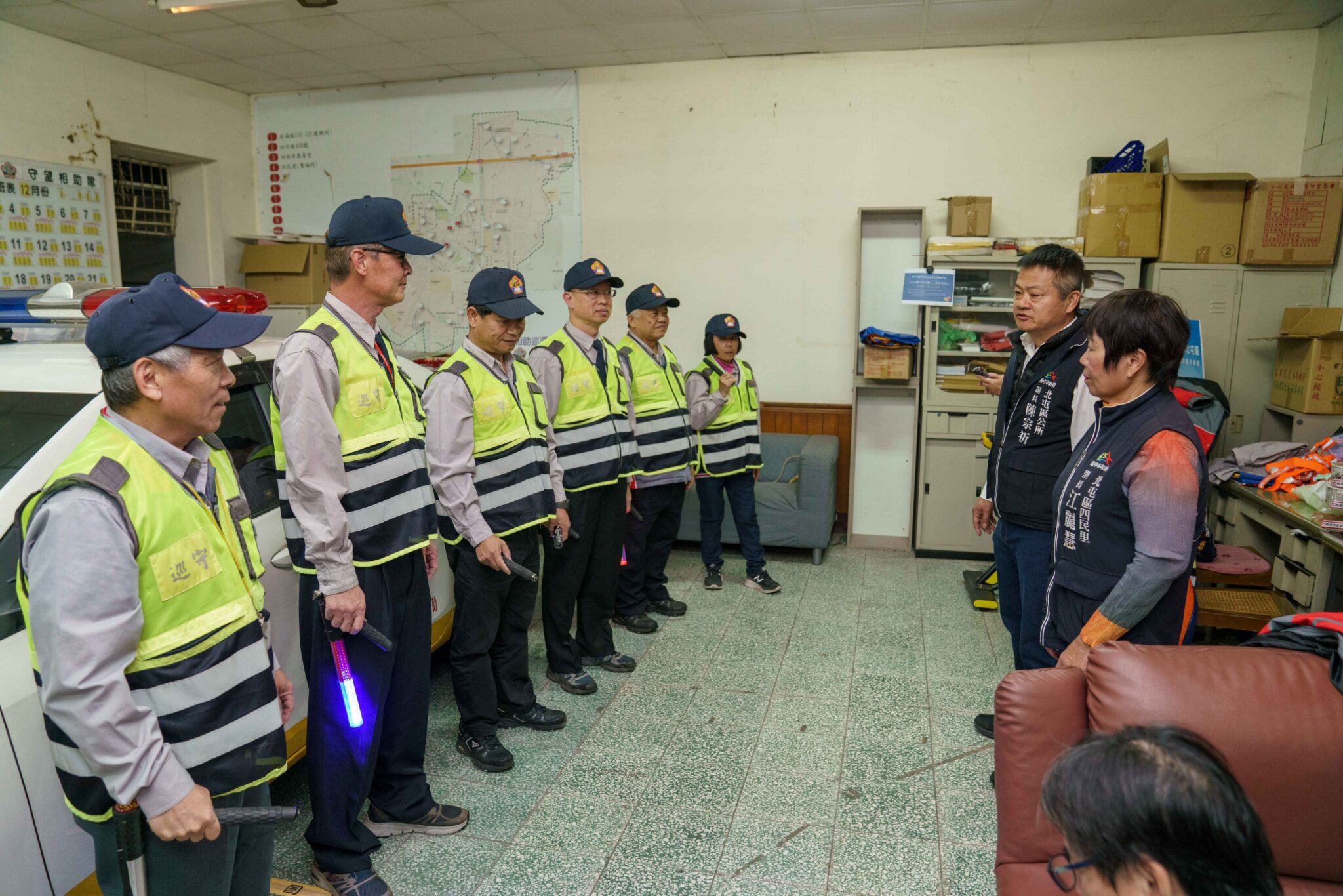 民政局表示,昨(23)晚民政局專門委員洪紹欽偕同北屯區長陳宗祈、西屯區長鄭錫禧,以及四民里長江麗慧、何安里長何唐文鈴,分別前往北屯區四民里及西屯區何安里守望相助隊關心巡守運作情形,並慰勞隊員執勤辛勞,也提醒隊員巡邏時務必留意自身安全,夜間巡守也要加強保暖並注意身體狀況,確保在安全無虞的情況下執行任務,共同守護社區治安與居民安全。