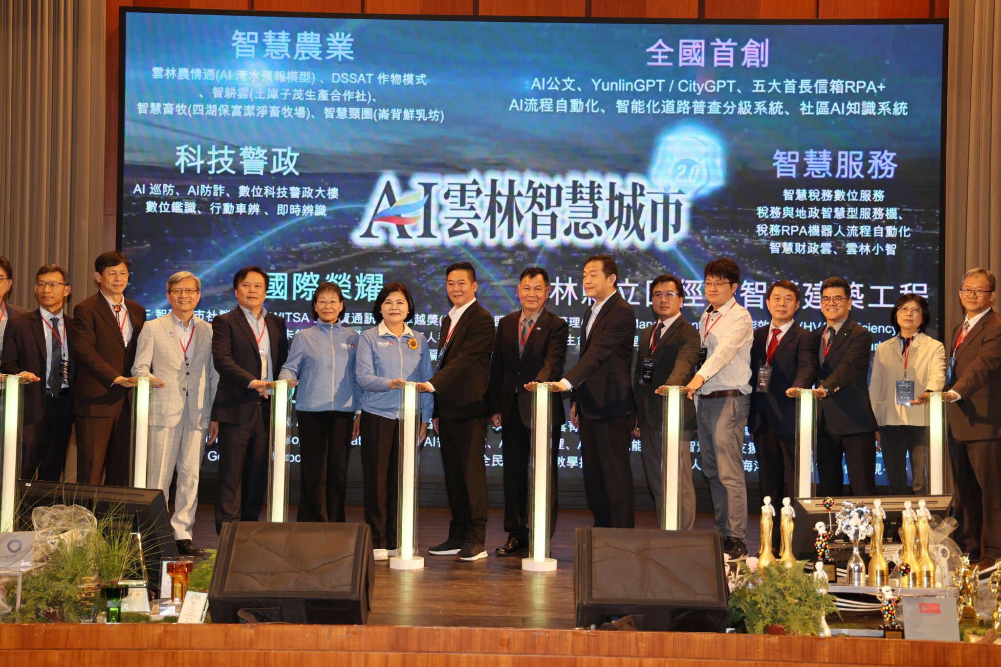 張縣長強調,縣府以「AI 公文 × YunlinGPT × 五大首長信箱 RPA+AI 自動化流程」作為重要里程碑,持續推進「科技治理、智慧行政」與「AI 雲林智慧城市 2.0」願景,攜手產業與科技夥伴,引領雲林邁向智慧、創新與永續的未來。